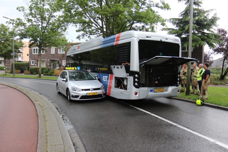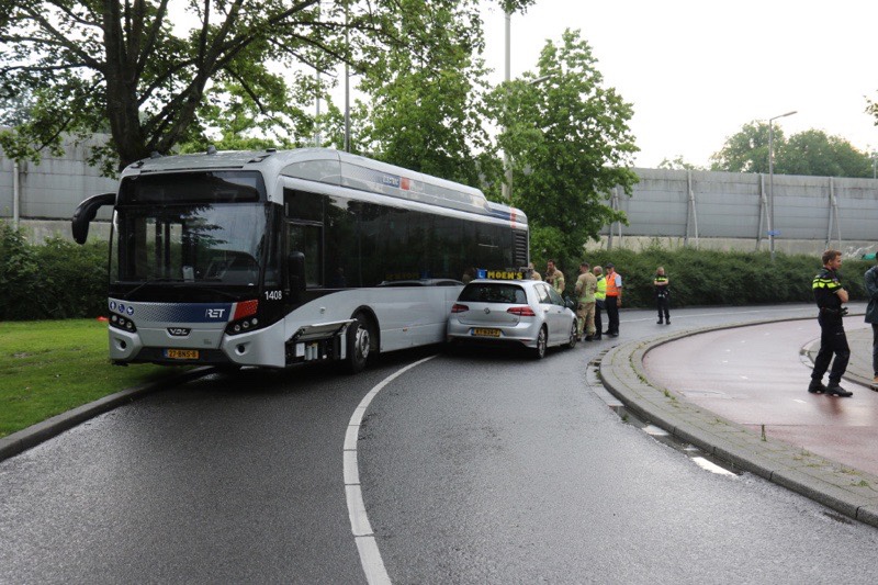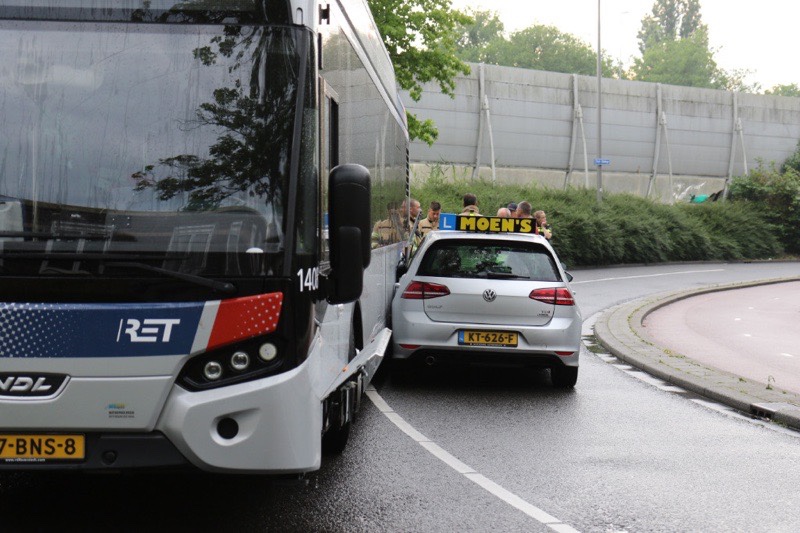 Rotterdam – Een leswagen en een bus van de RET zijn donderdagavond in een bocht aan de Kedichemstraat met elkaar in botsing gekomen.