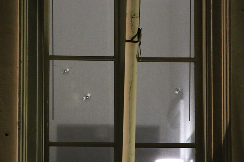 Within minutes after the shooting many police units arrived and started a big investigation. In the front walls of the building they found more than 20 gunshot impacts.