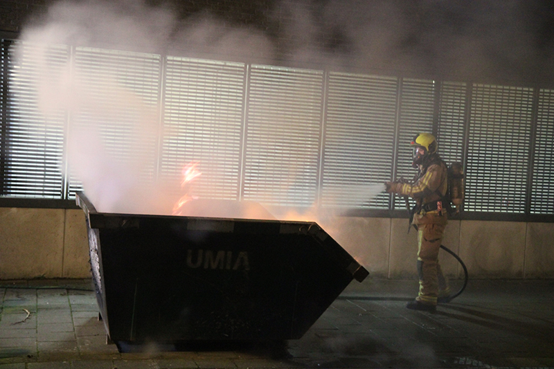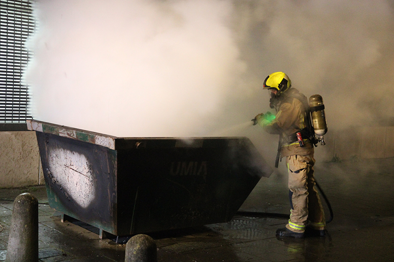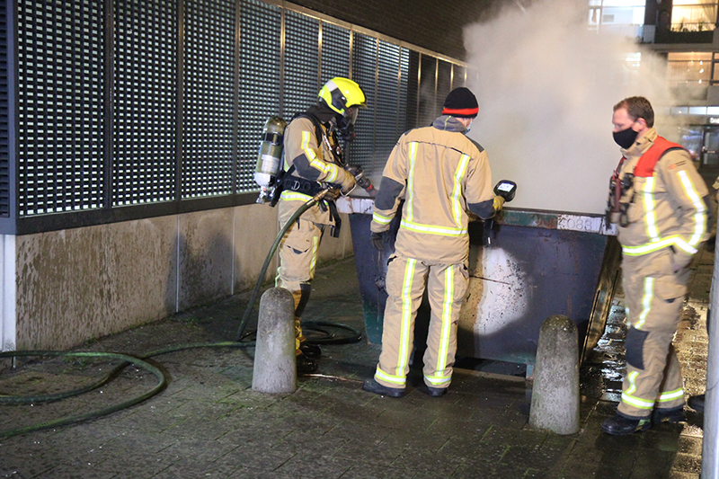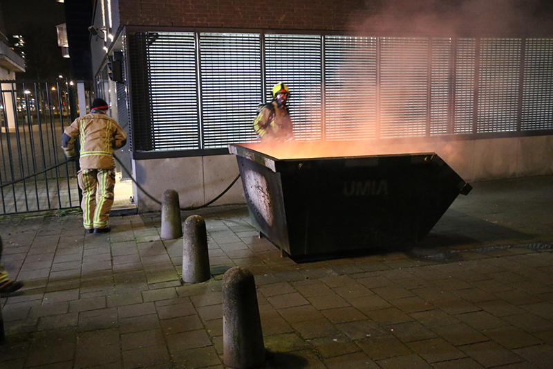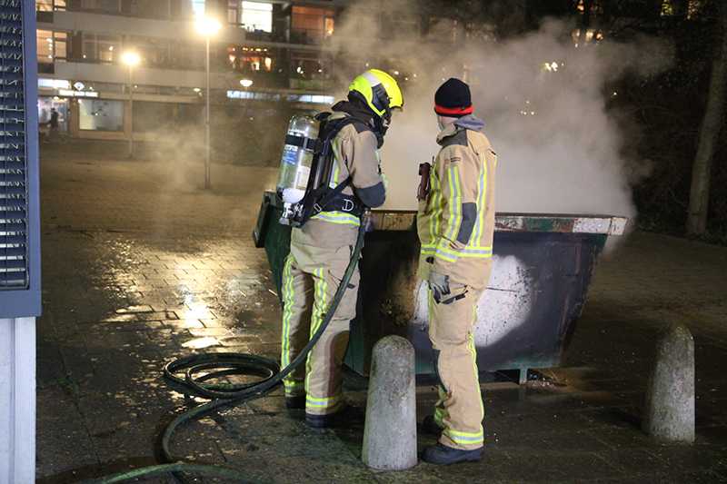 Alhier is een grote container voor bouw- en sloopafval in brand gestoken. De Delftse brandweer heeft de container vol laten lopen met water waarna de brand doofde.