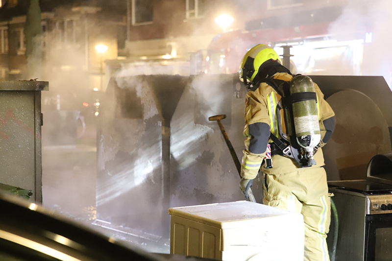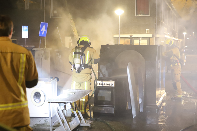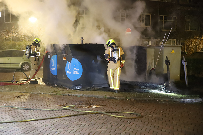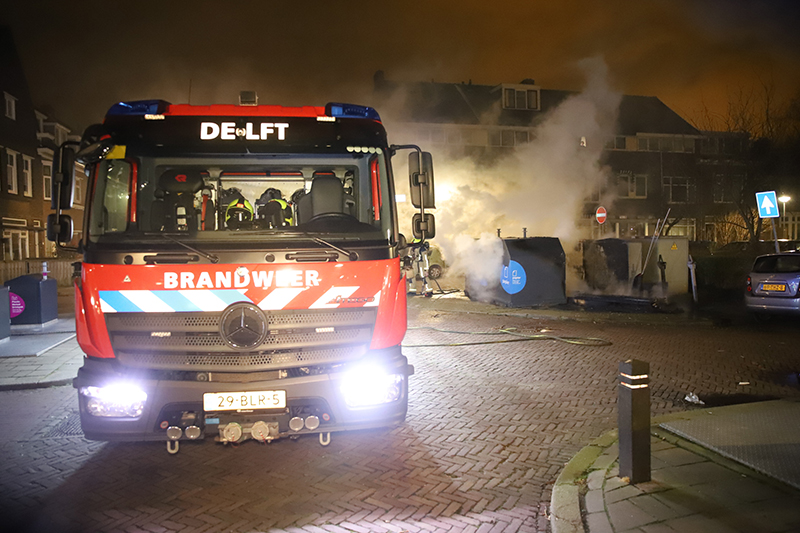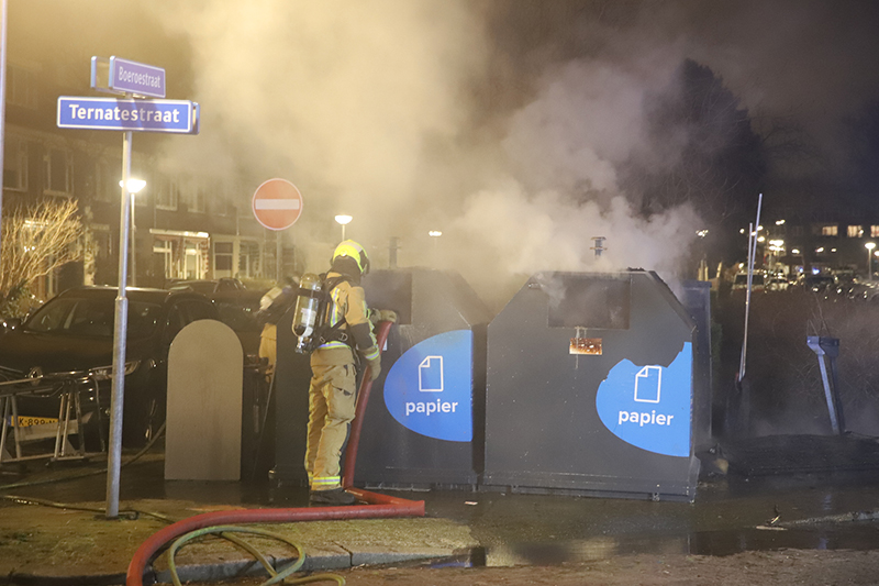 Delft – In de nacht van zaterdag 13 op zondag 14 maart zijn er op de kruising van de Boeroestraat met de Ternatestraat twee bovengrondse papiercontainers en een grote stapel grofvuil in brand gestoken.