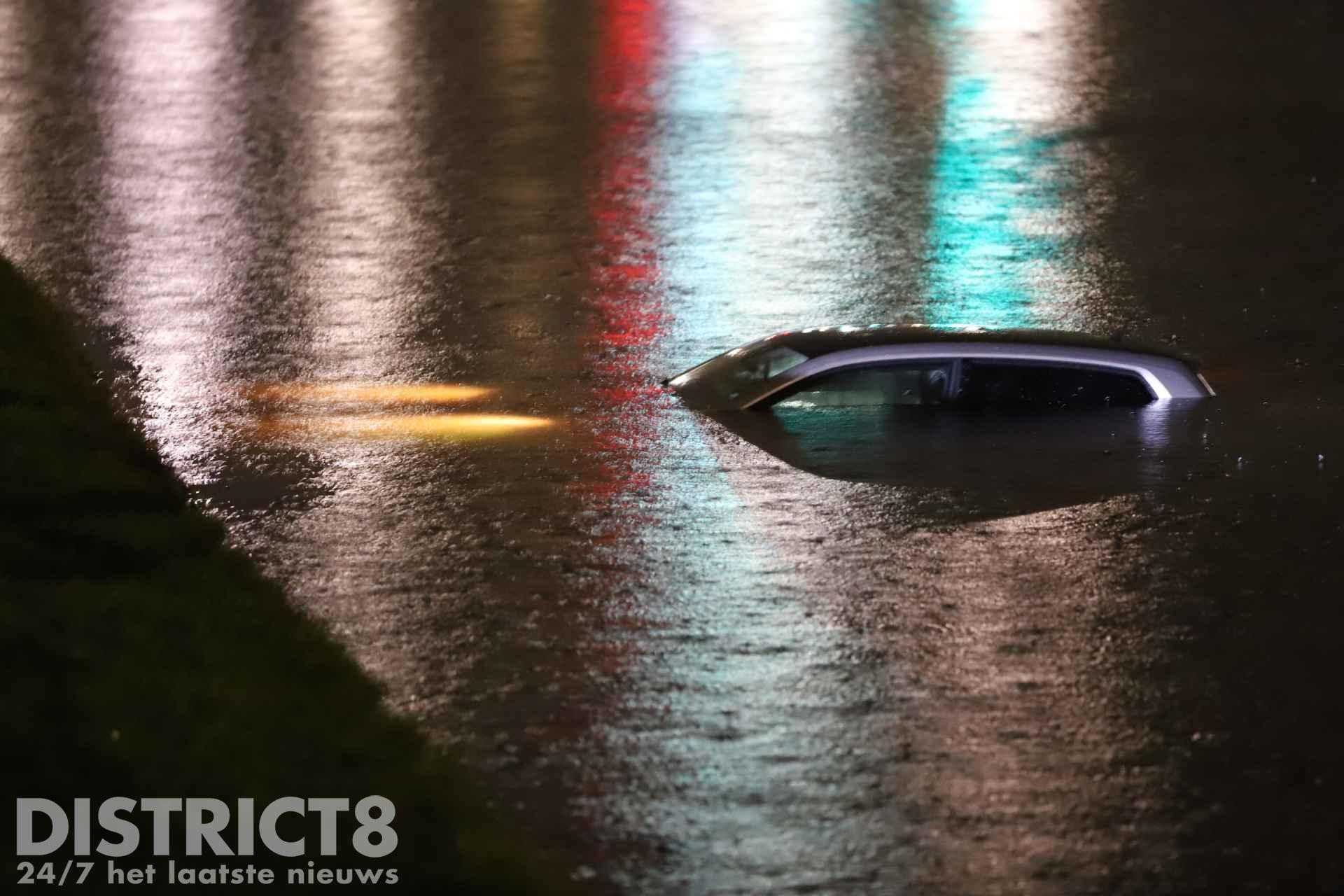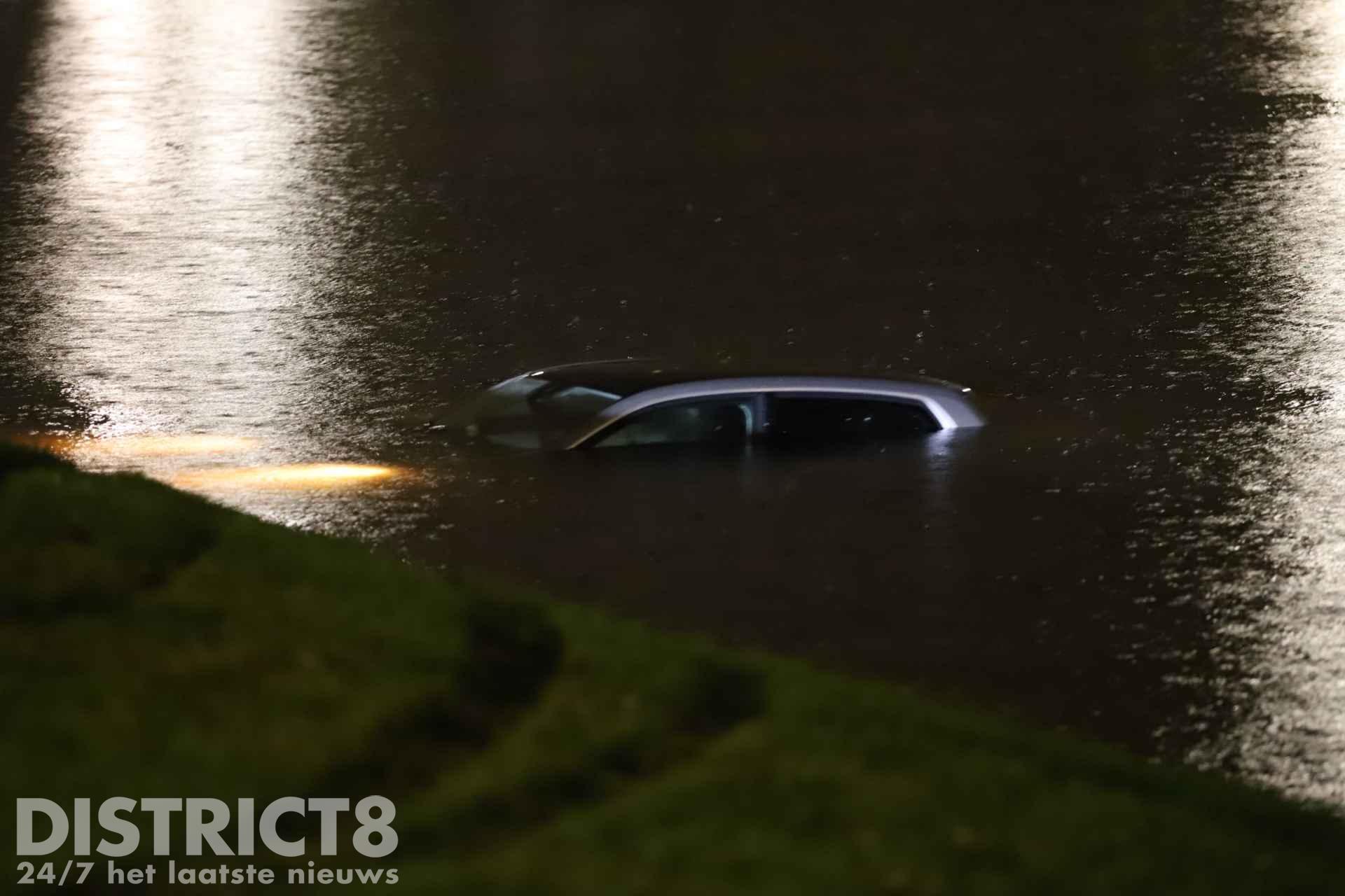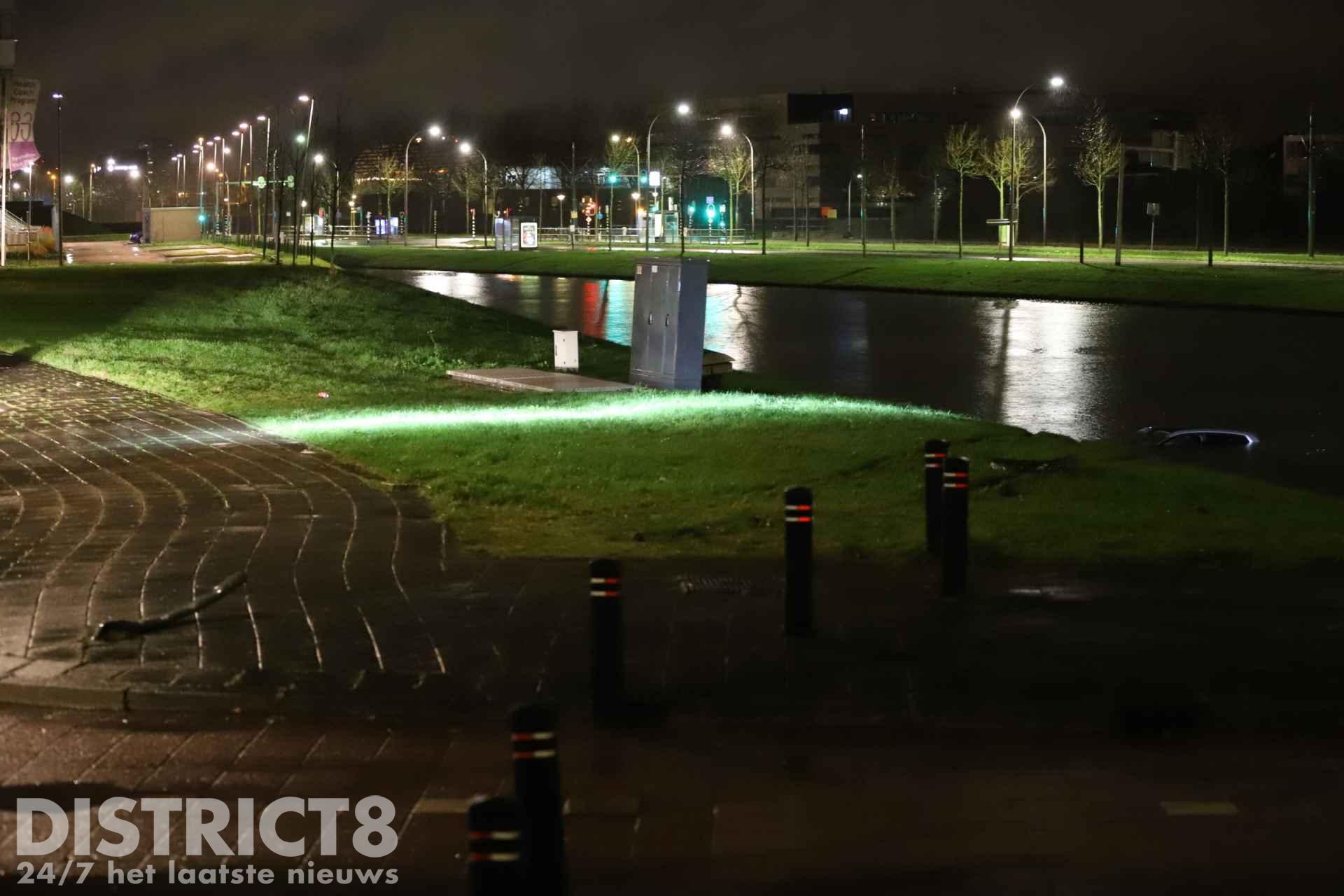 Den Haag – Aan de Laan van Waalhaven in Den Haag is vannacht een auto in het water belandt nadat de bestuurder de macht over het stuur verloor.