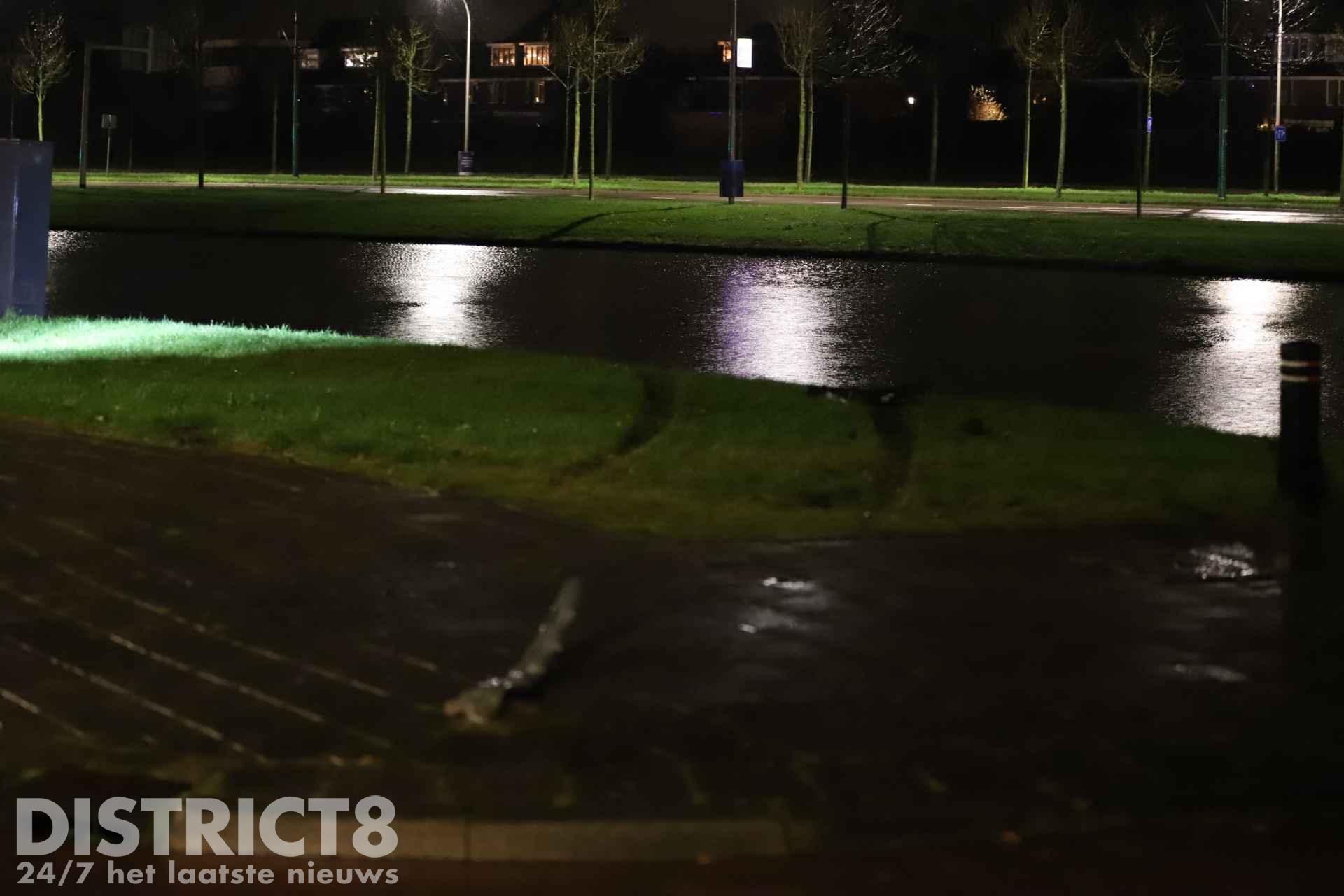Rond 04:15 ging het mis. De bestuurder raakte als eerst een verkeerspaal en belande daarna in het water.