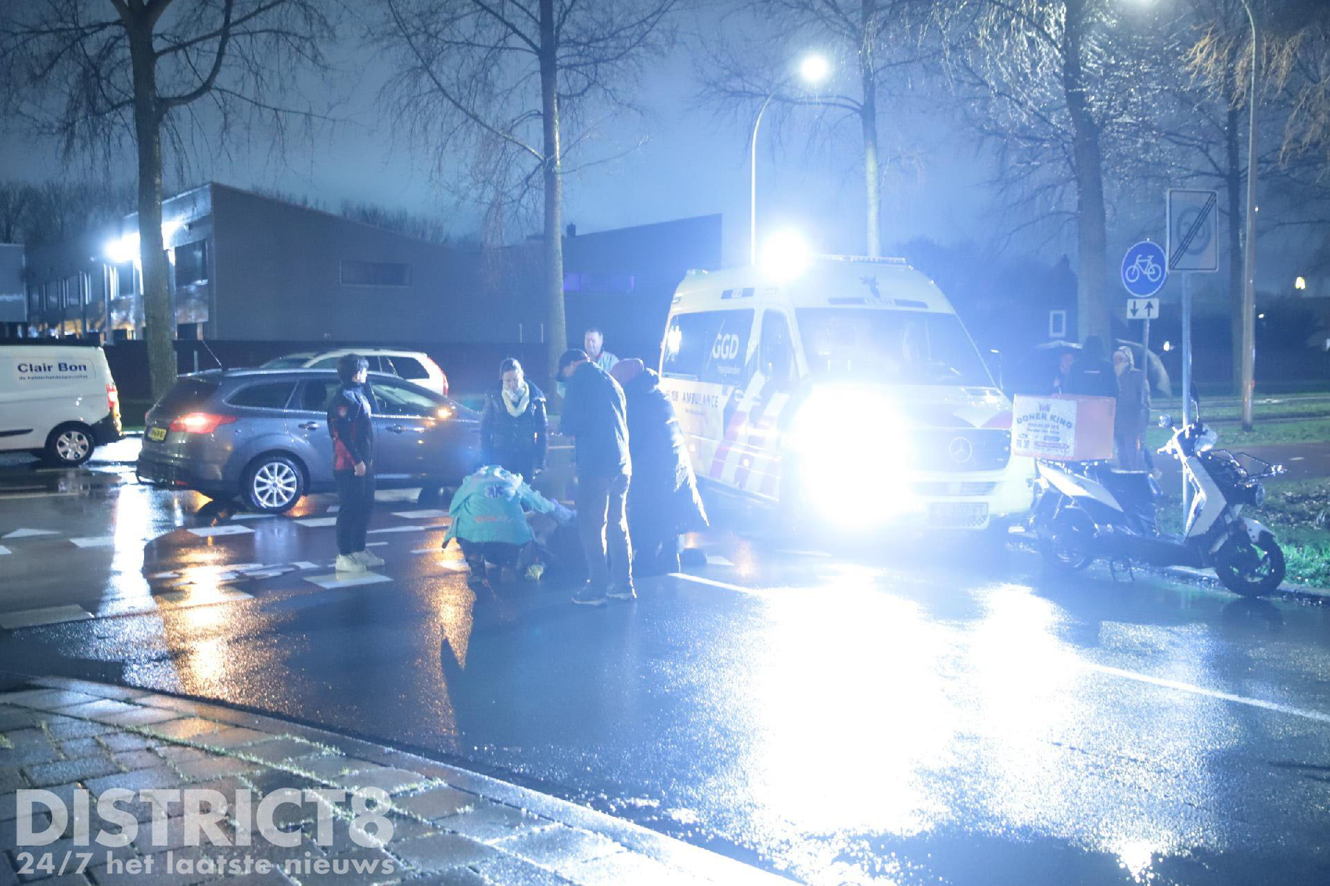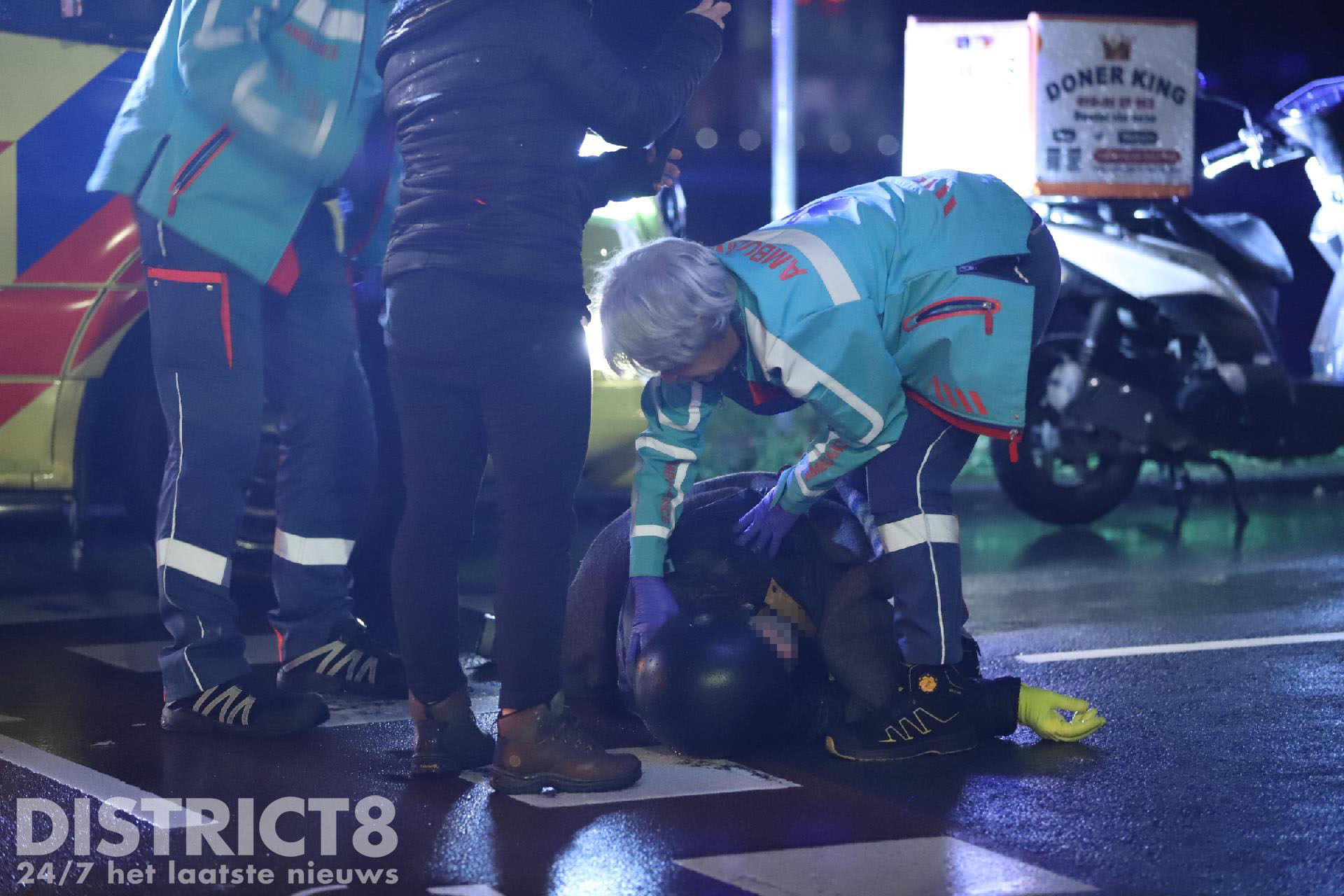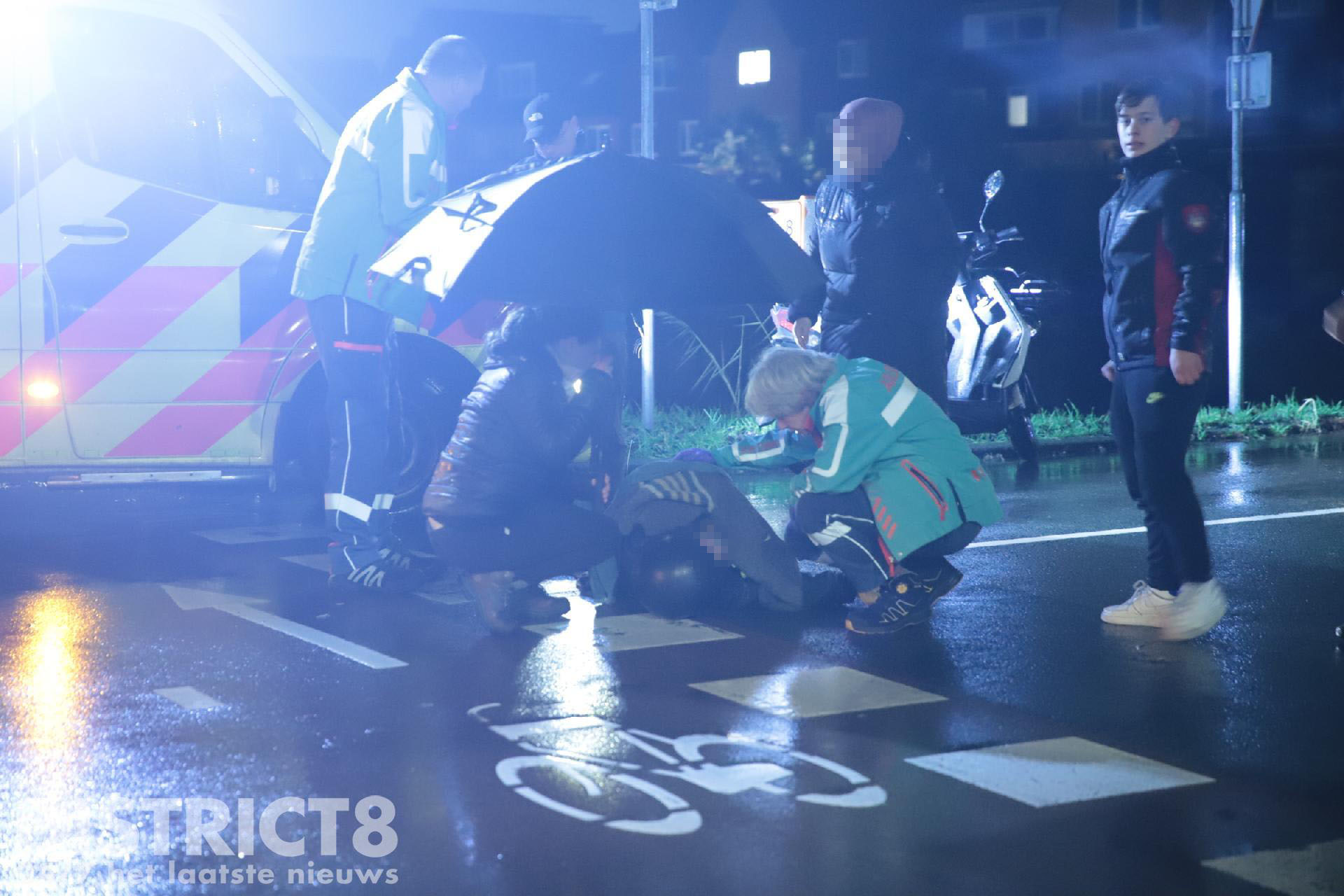 Rond half negen ging het door een nog onbekende oorzaak mis. Omstanders die het ongeval zagen gebeuren hebben direct eerste hulp verleend en de bezorger afgeschermd van de regen.