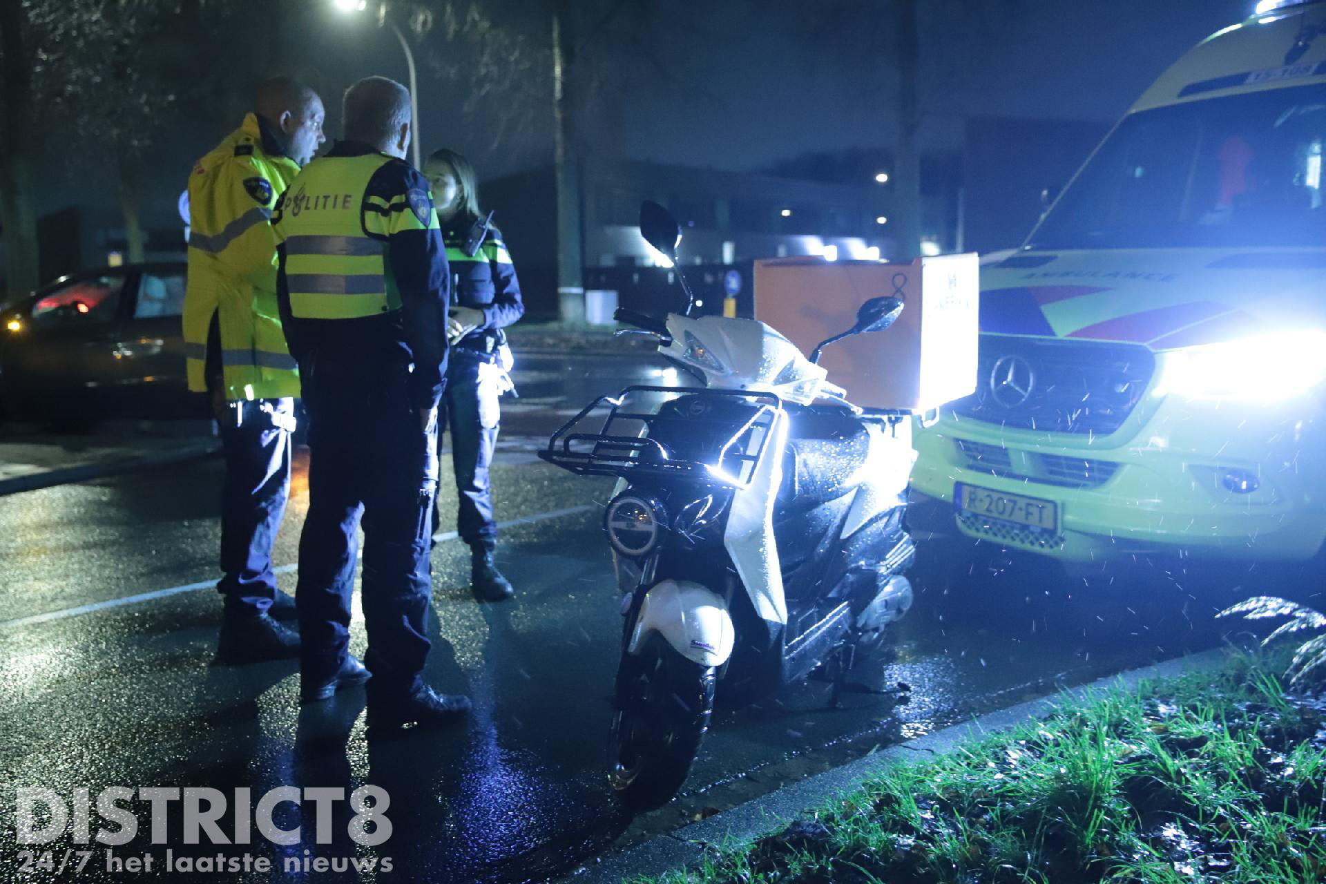 De opgeroepen ambulance heeft de scooterrijder onderzocht. Hierna is hij, zonder spoed, overgebracht naar het ziekenhuis.