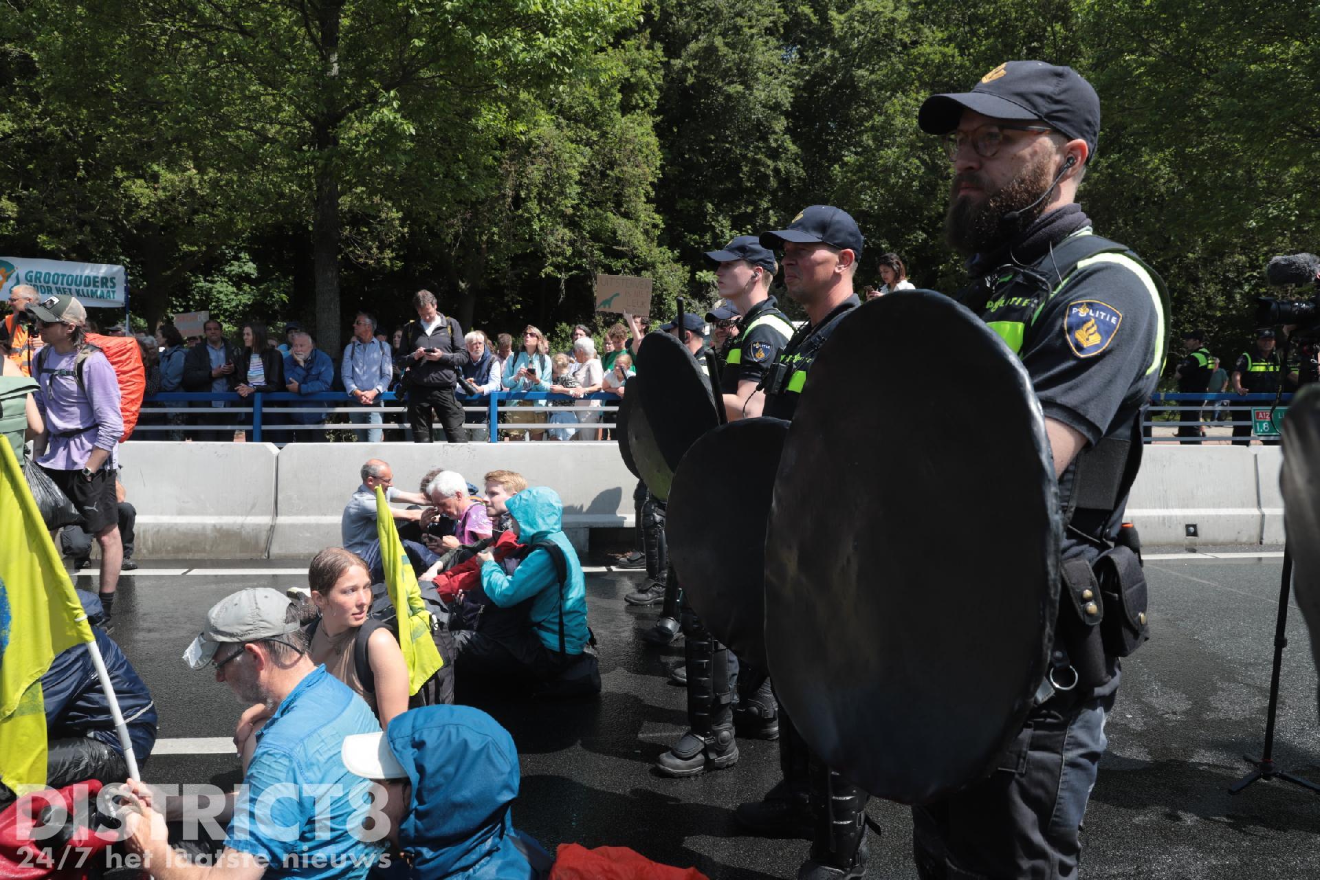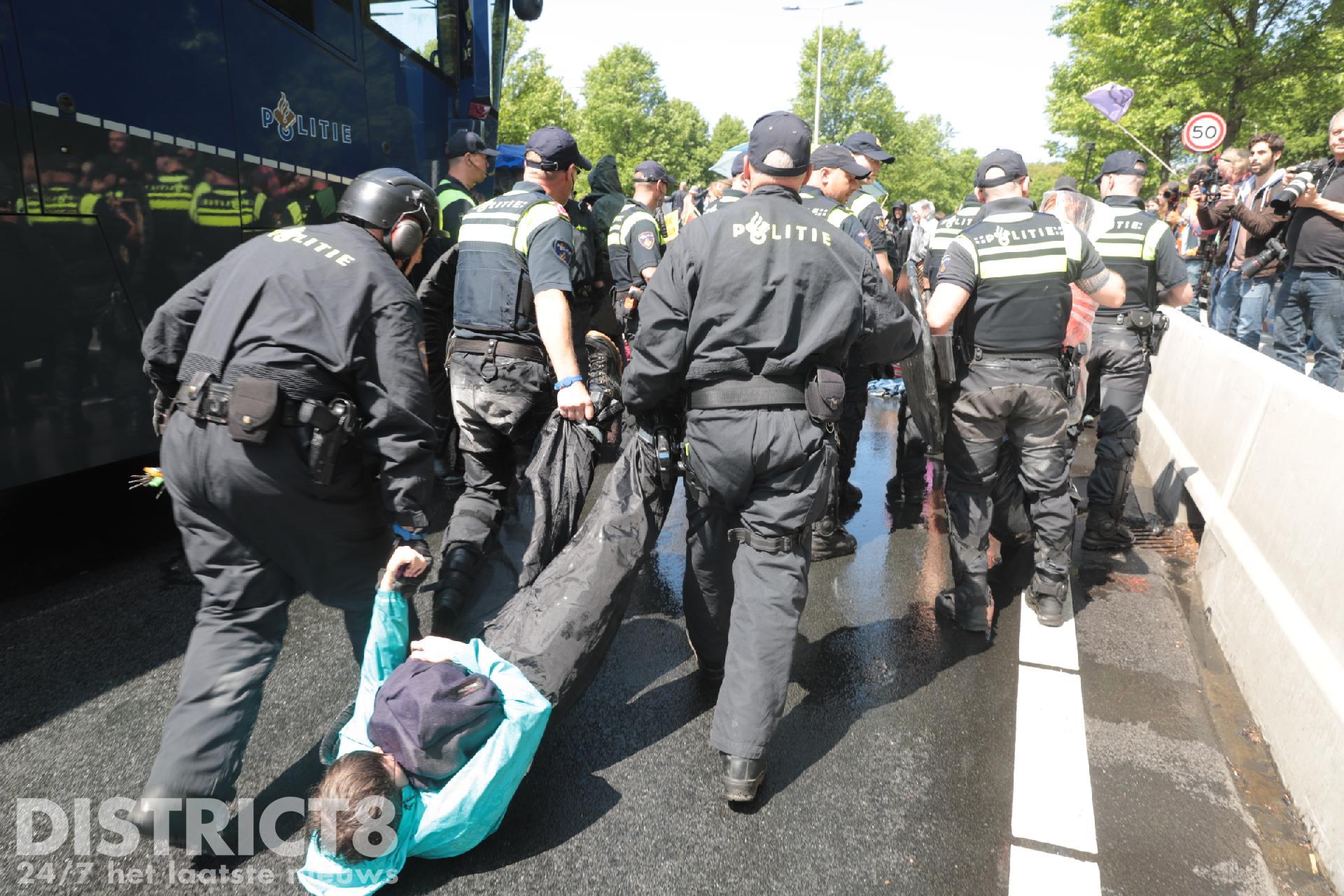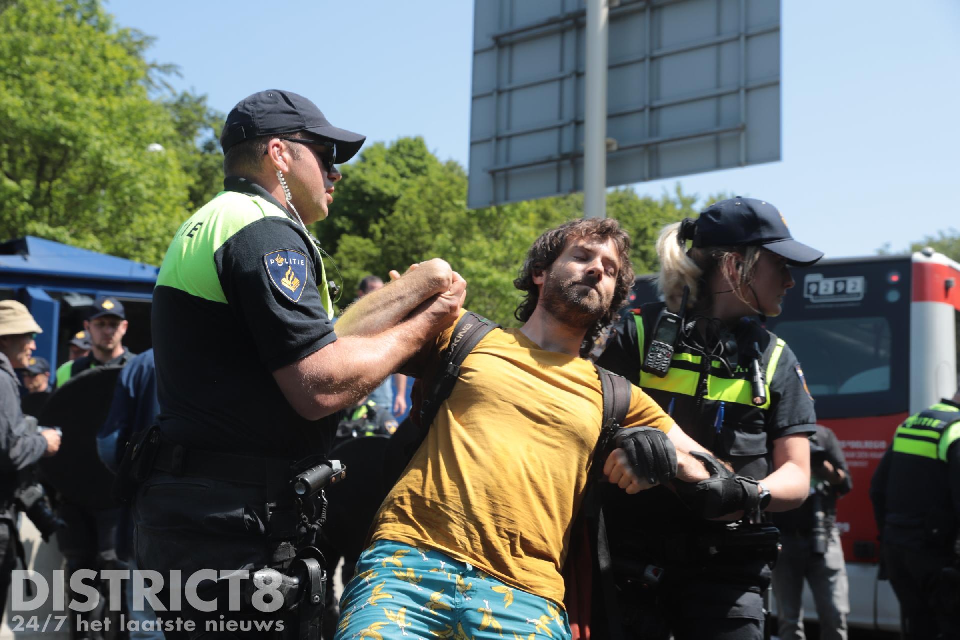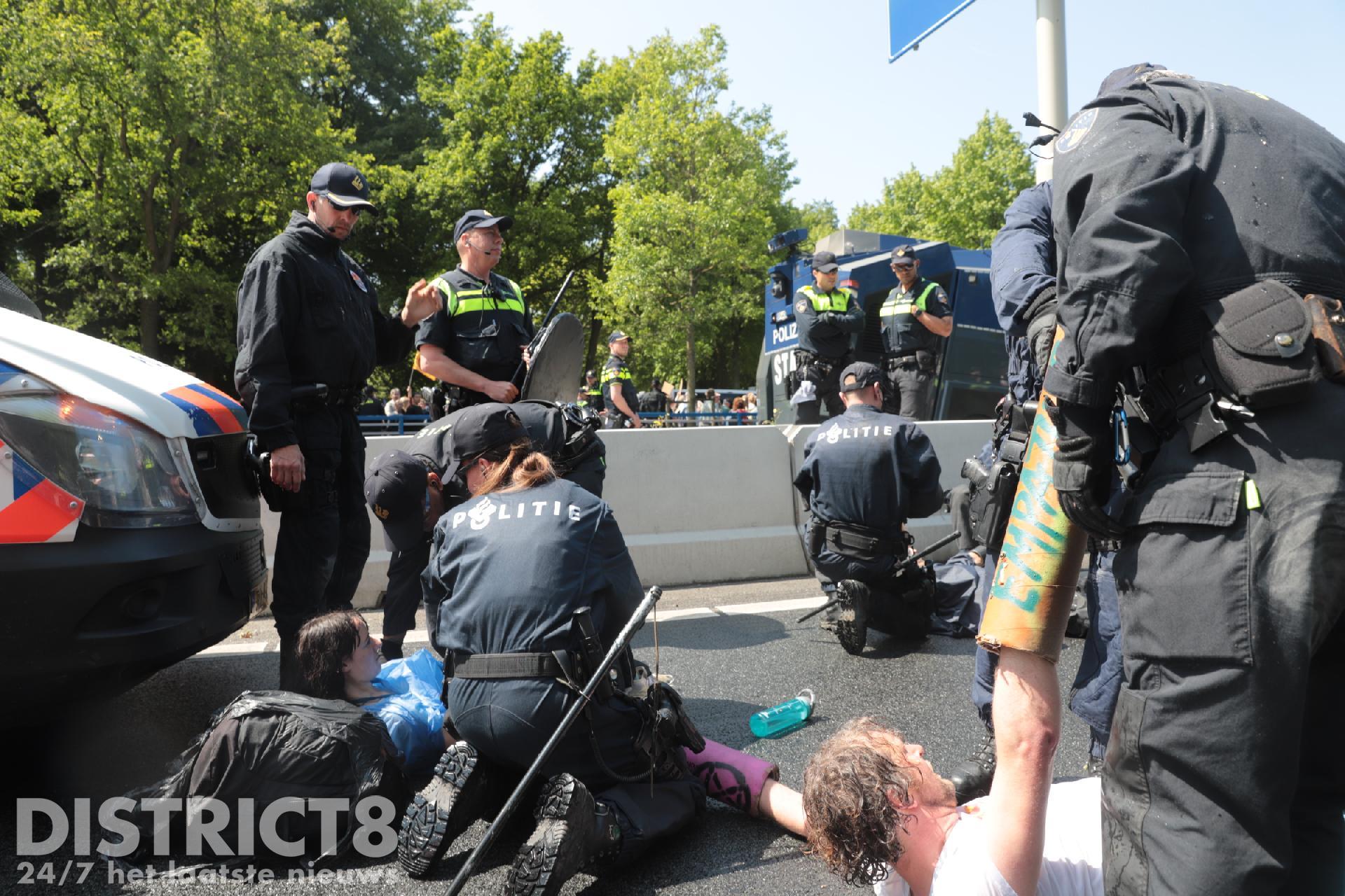De politie heeft bij de demonstratie al meerdere personen van de snelweg verwijderd.
