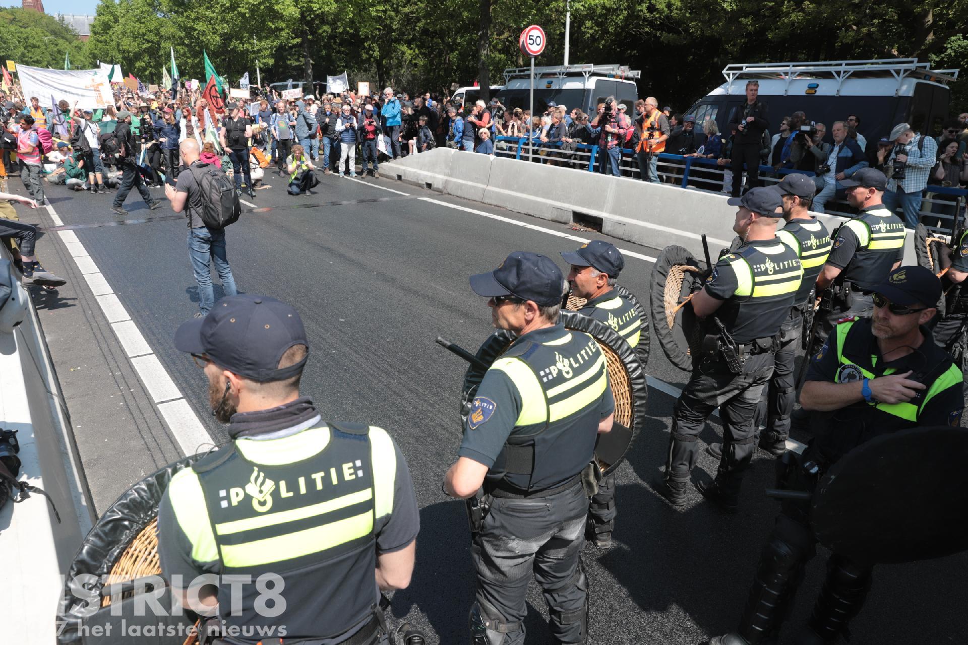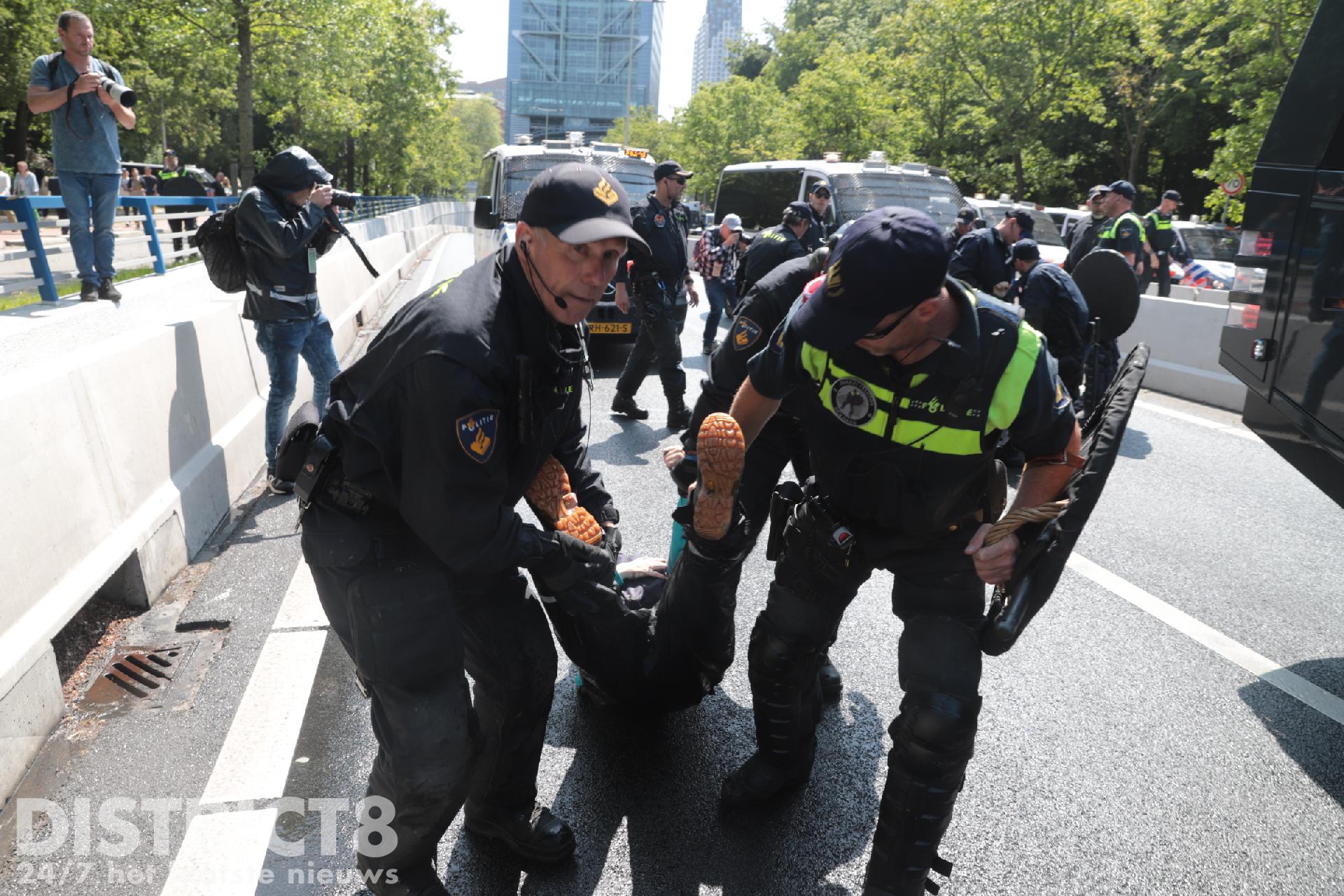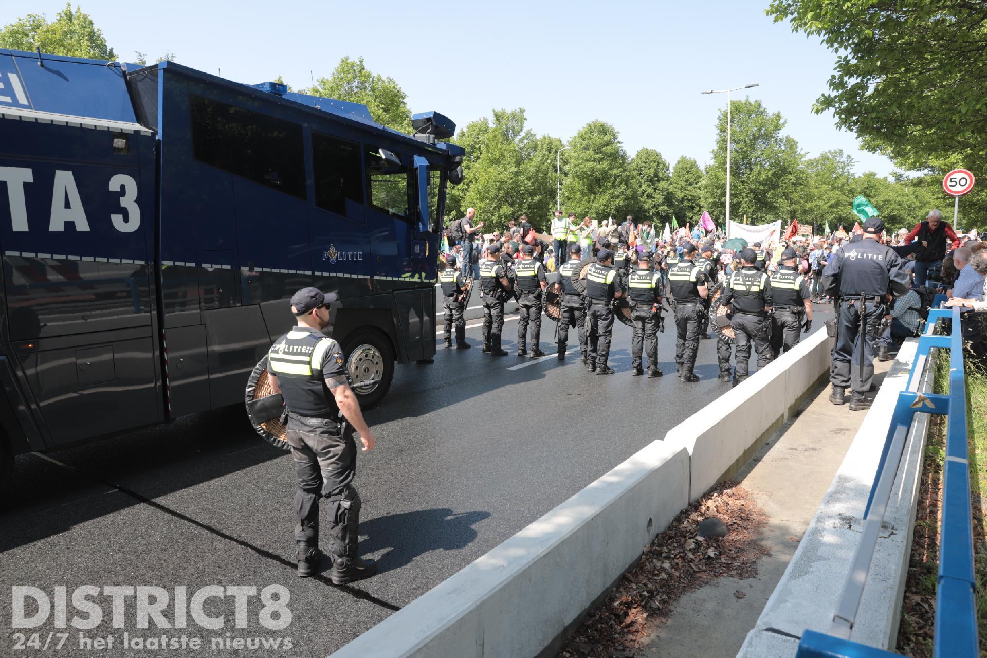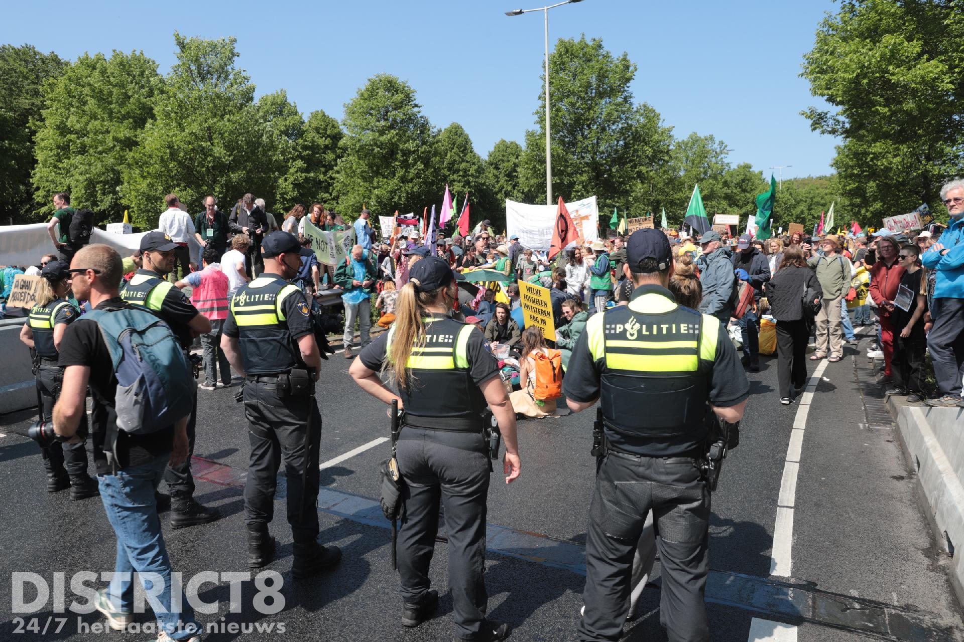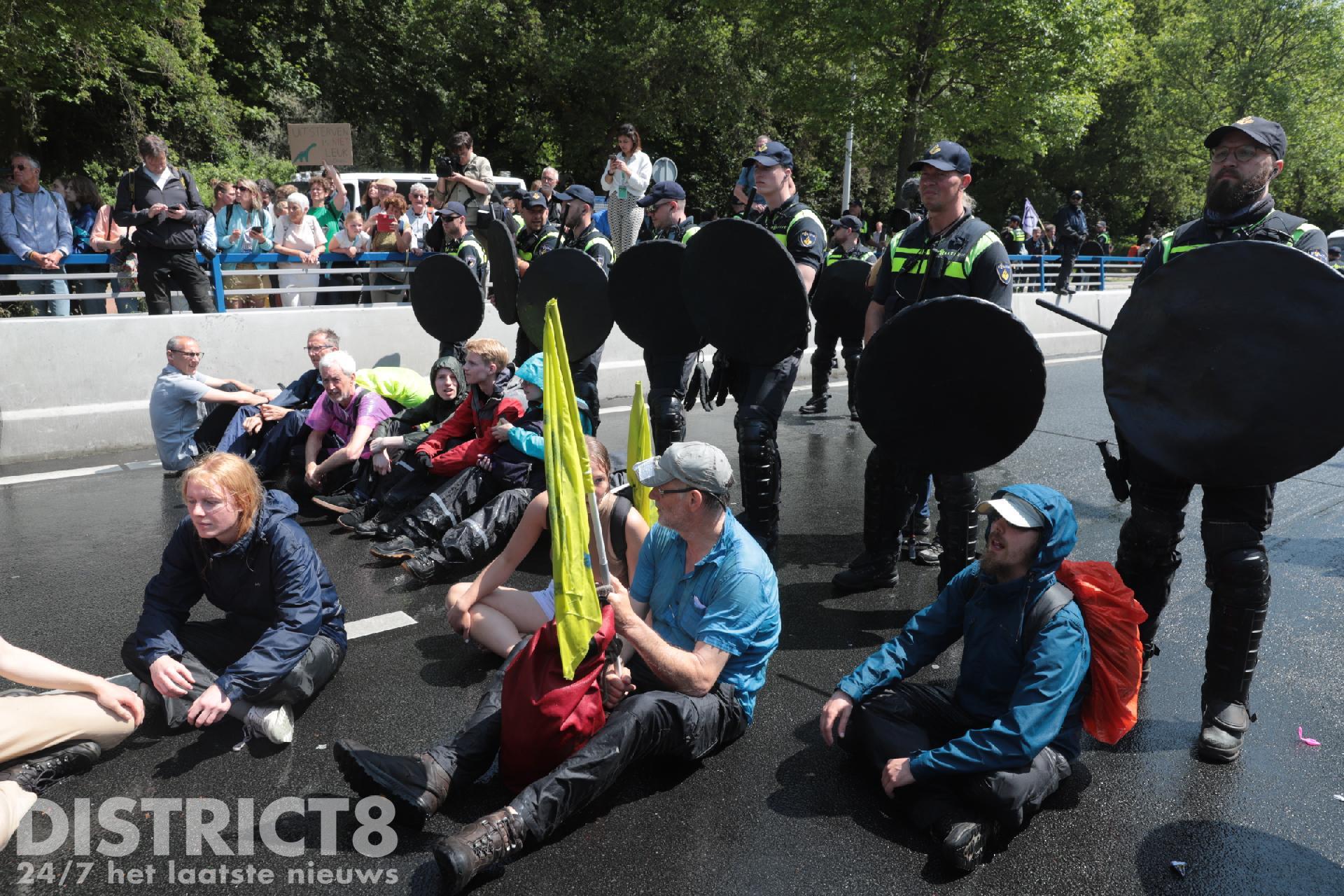 De politie heeft bij de demonstratie al meerdere personen van de snelweg verwijderd.