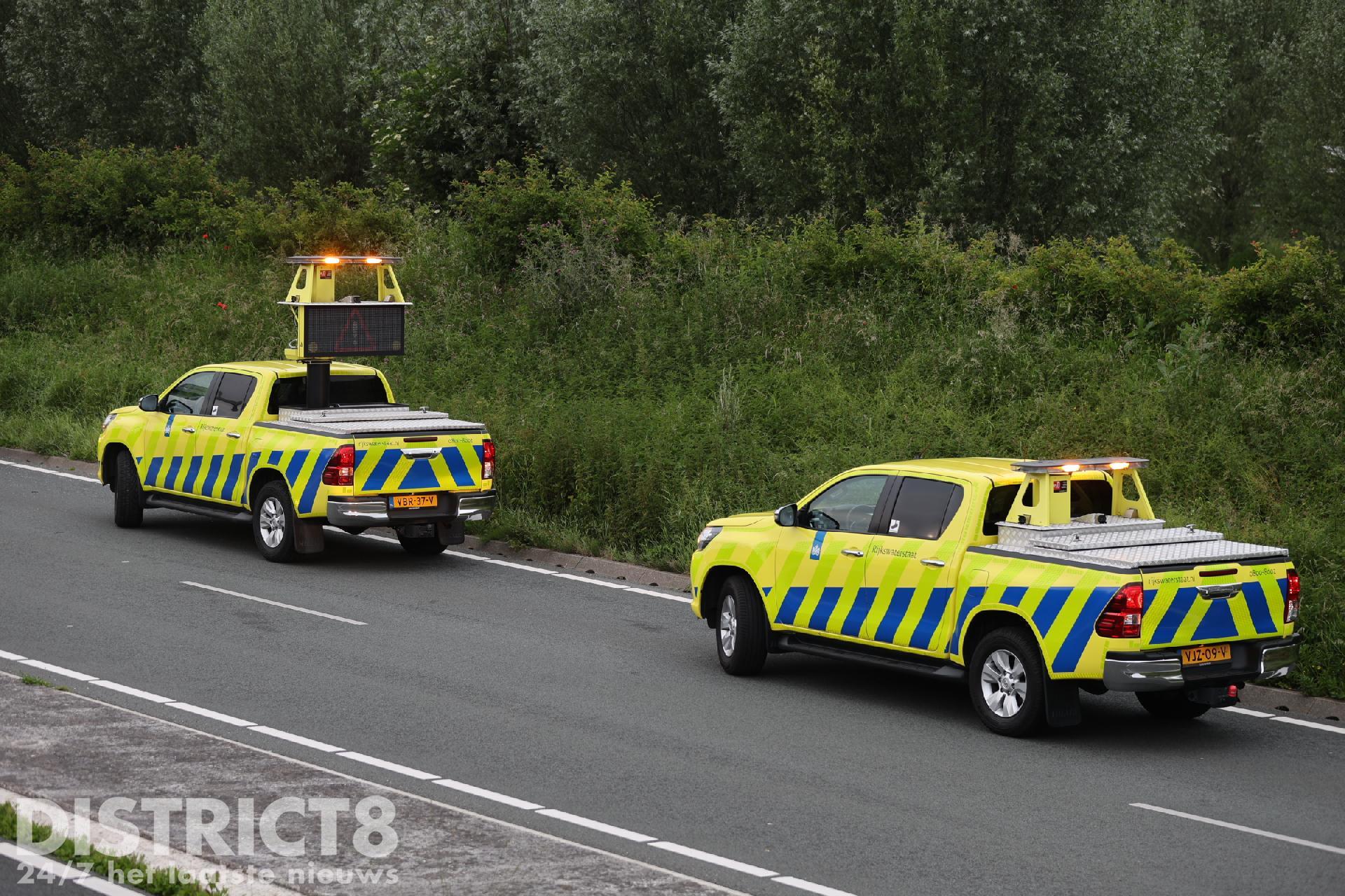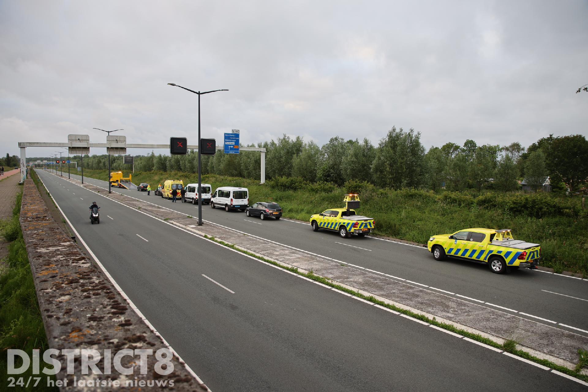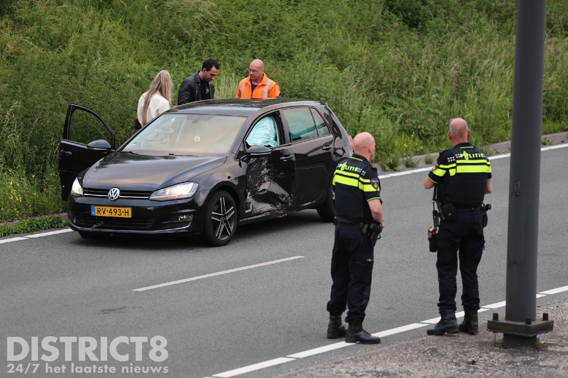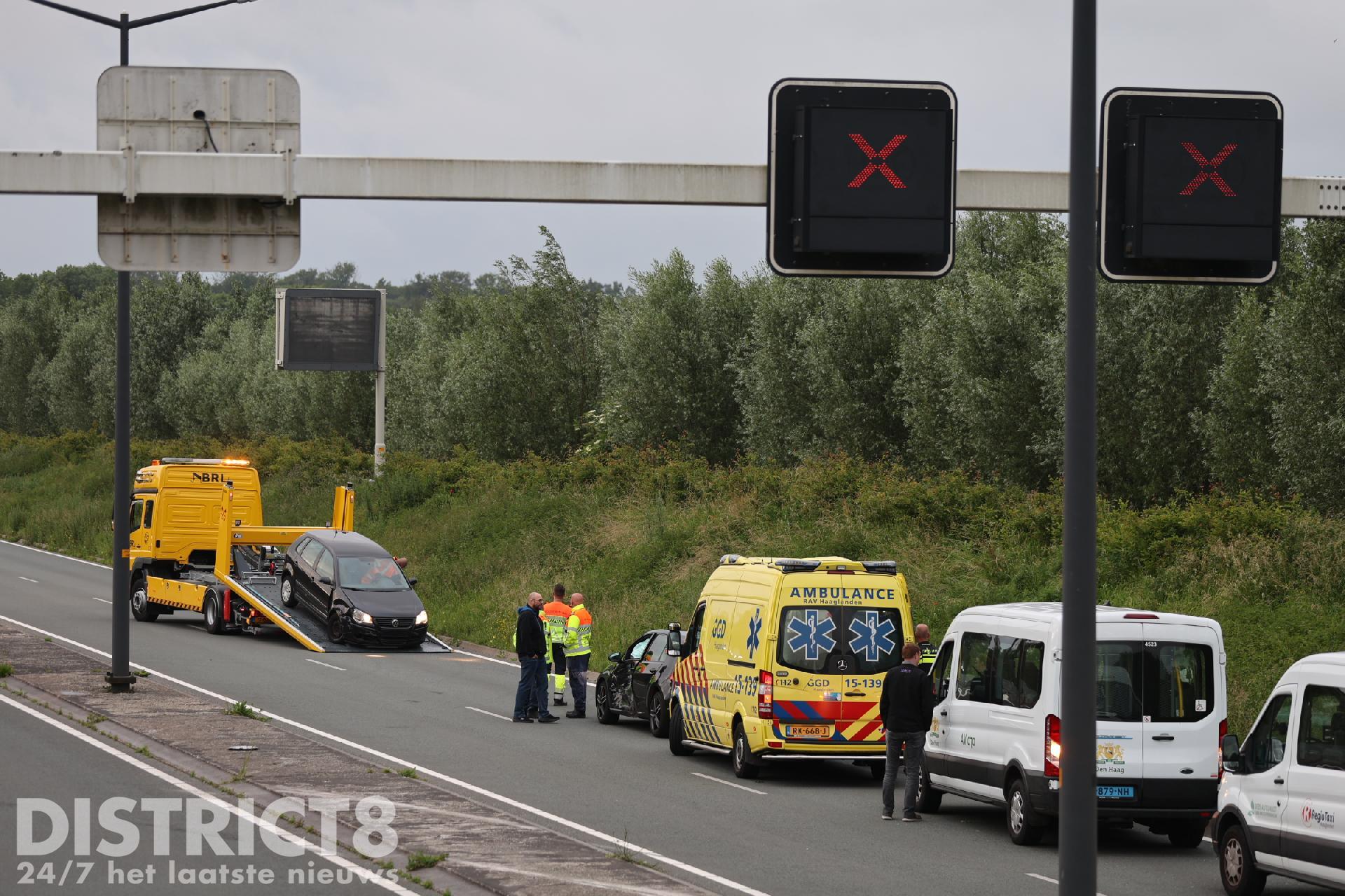 Twee voertuigen kwamen door onbekende oorzaak met elkaar in botsing met flinke schade tot gevolg. Na het ongeval werd de rijbaan afgesloten door de politie en Rijkswaterstaat.