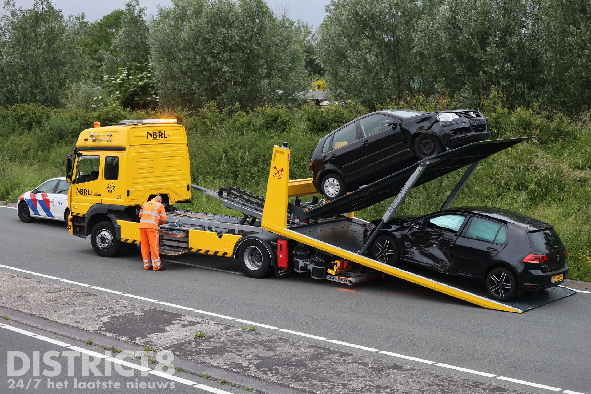 Een berger heeft beide voertuigen, met flinke schade, meegenomen.