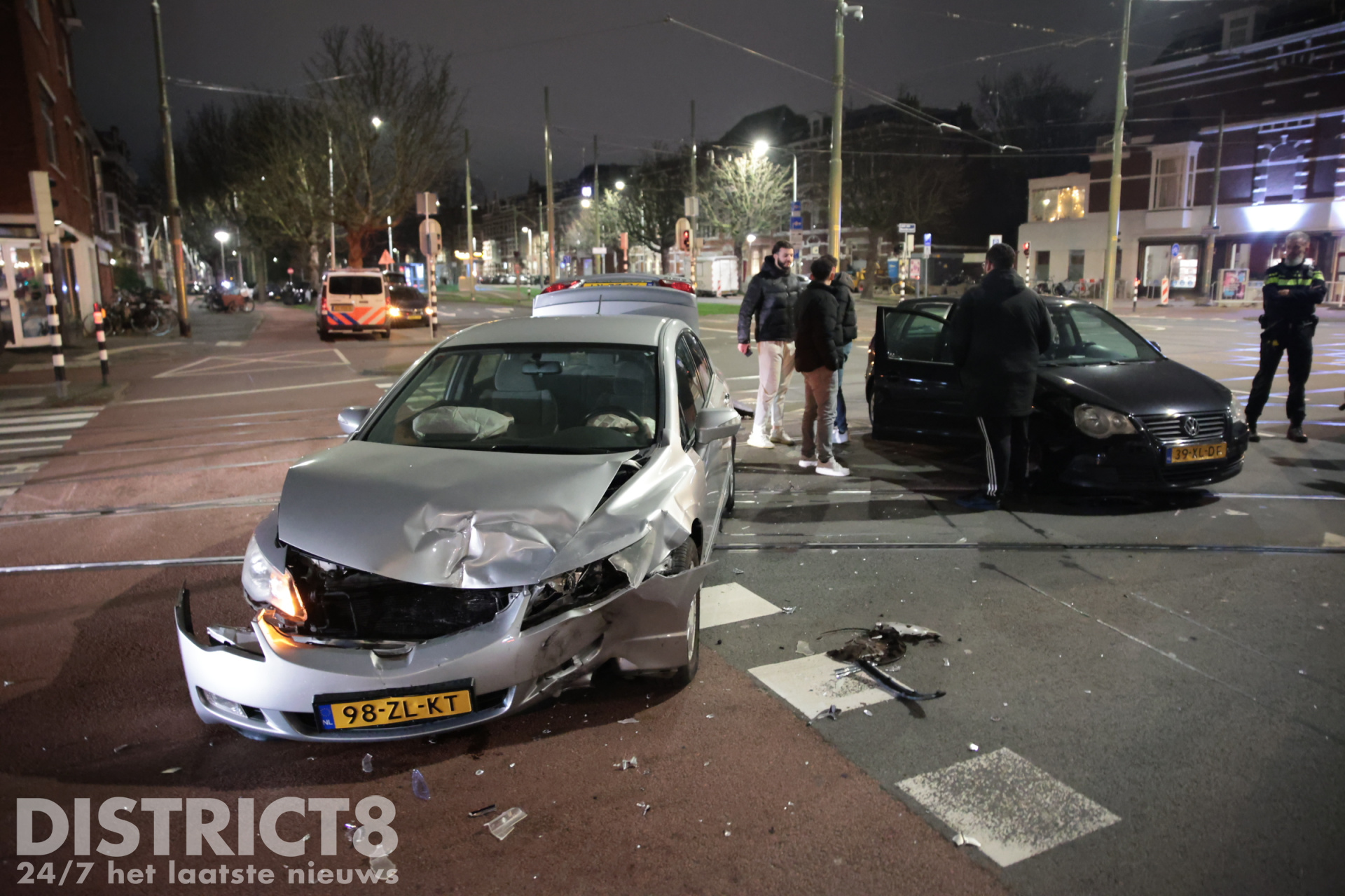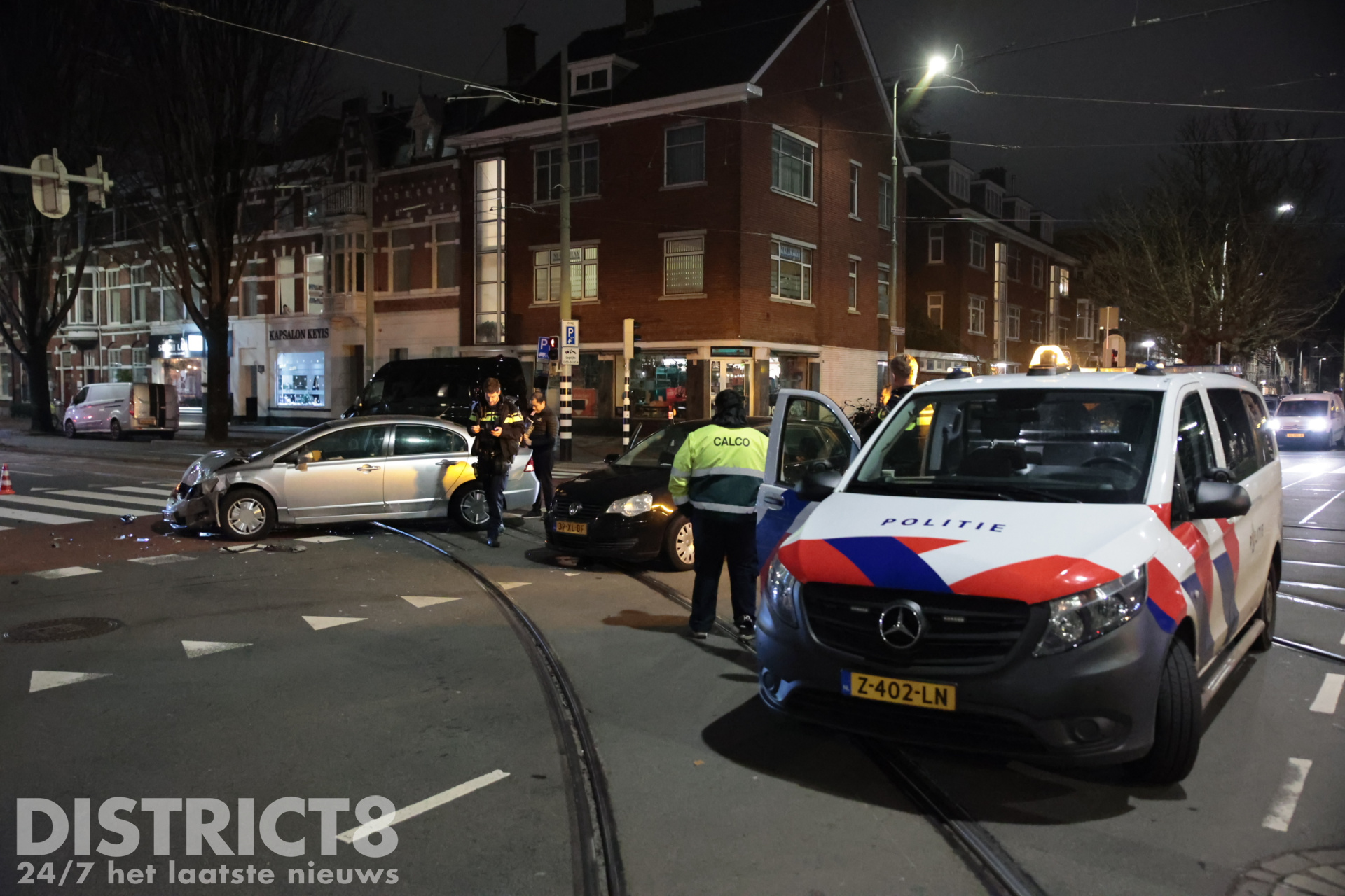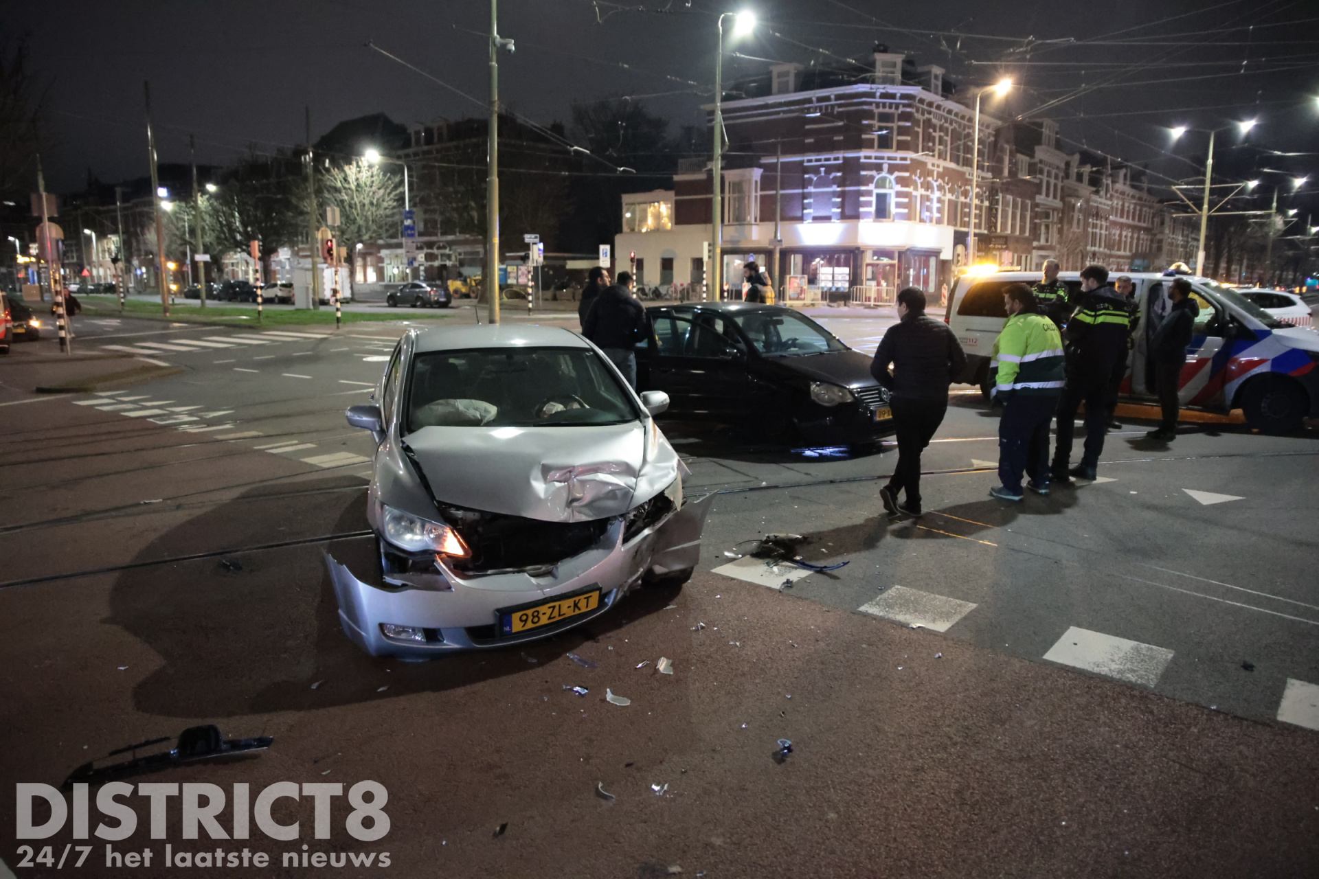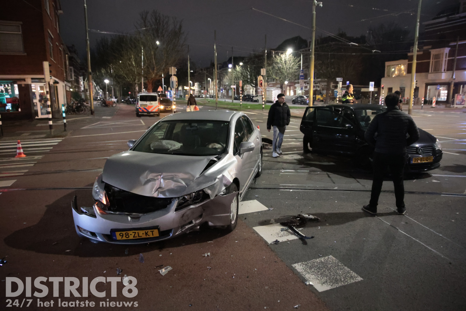 Den Haag – In de nacht van dinsdag 10 december op woensdag 11 december zijn twee personenauto’s met elkaar in botsing gekomen op de Koningin Emmakade kruising Laan van Meerdervoort in Den Haag.