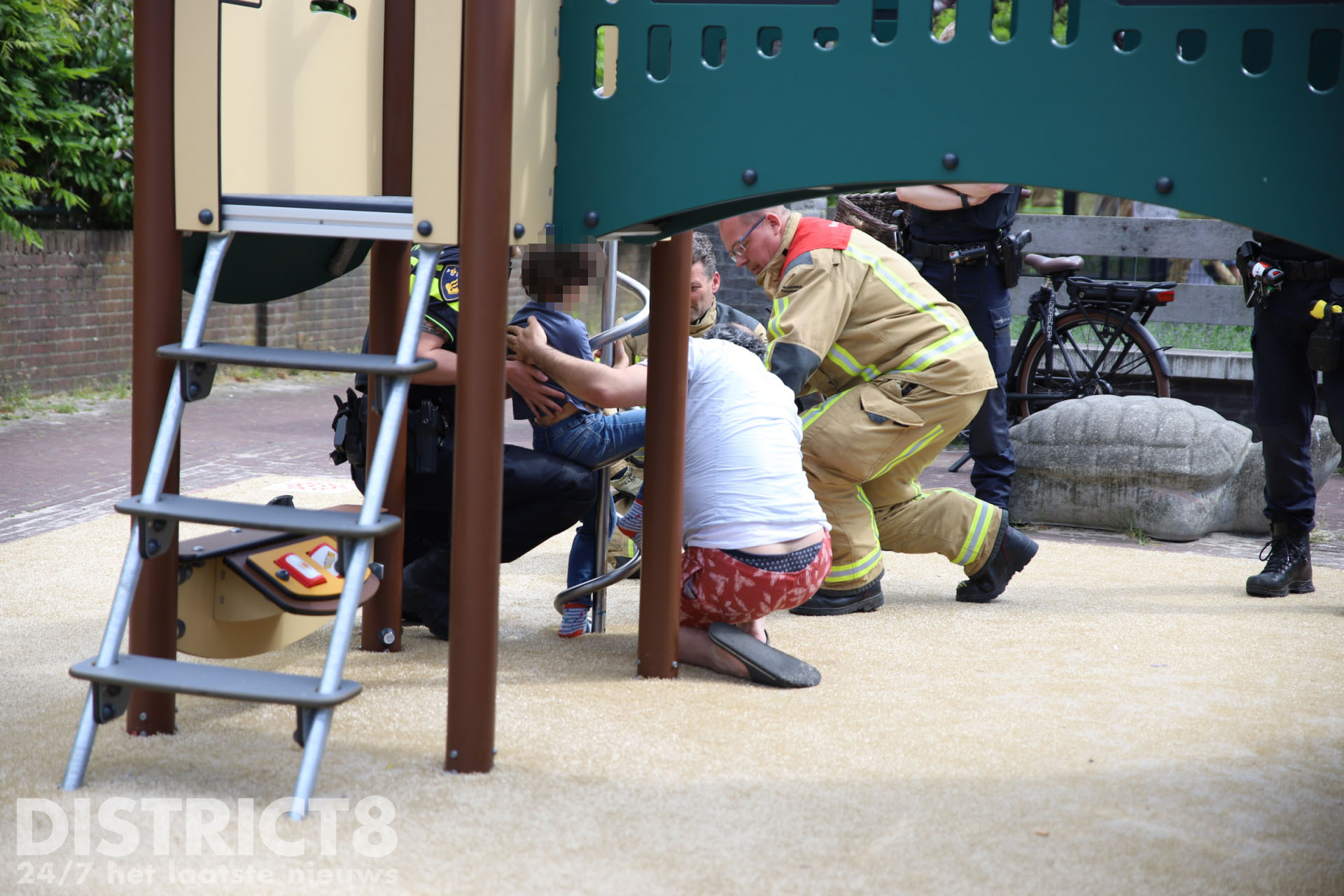Den Haag – Aan het Laantje van Salland heeft donderdagmiddag 8 mei een kindje in een speeltoestel vastgezeten.