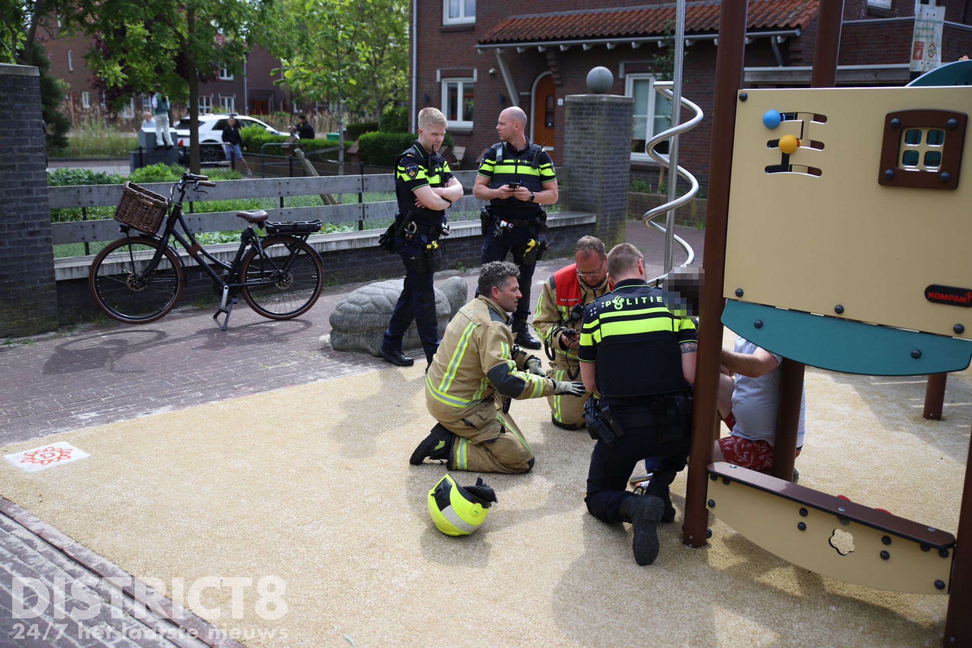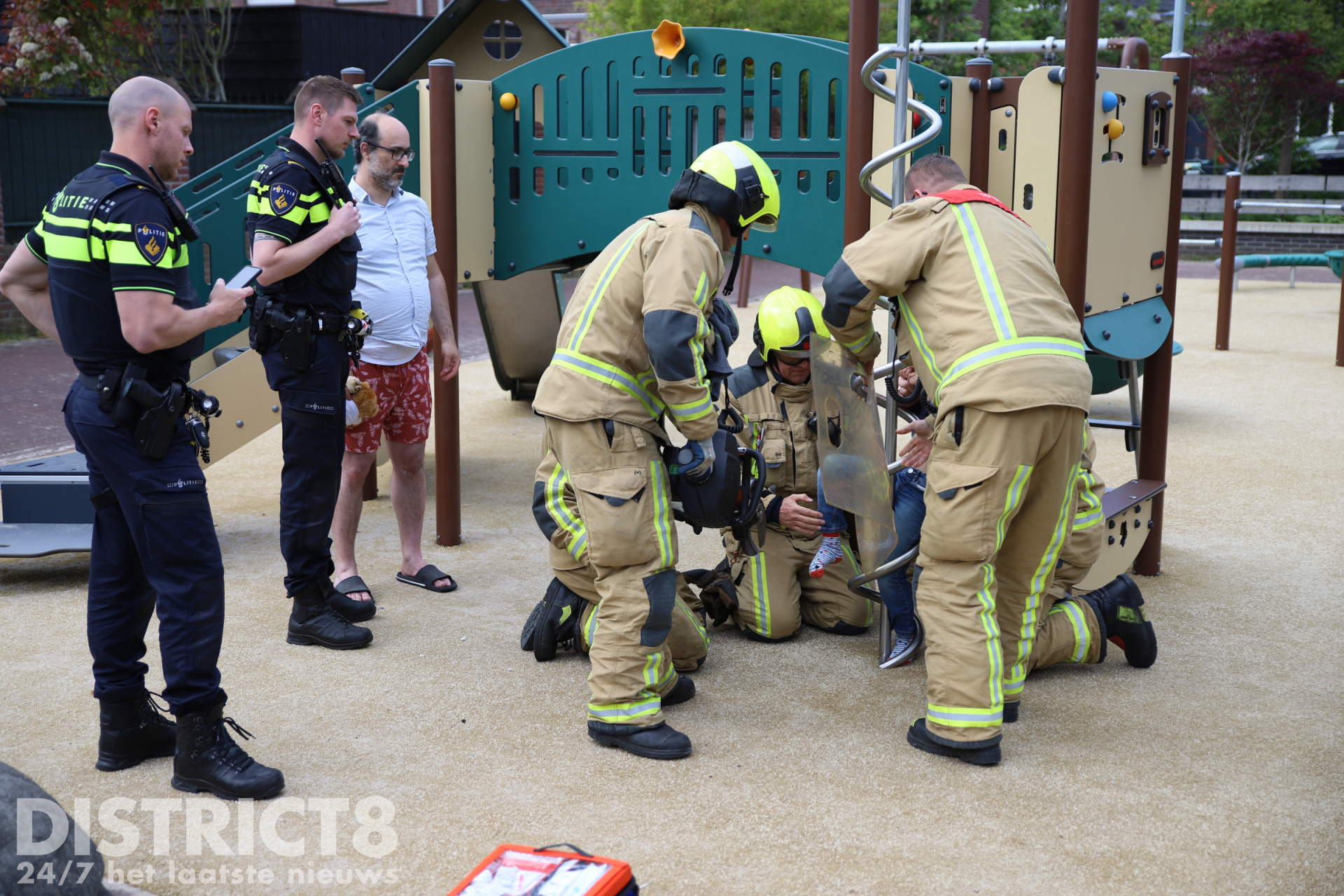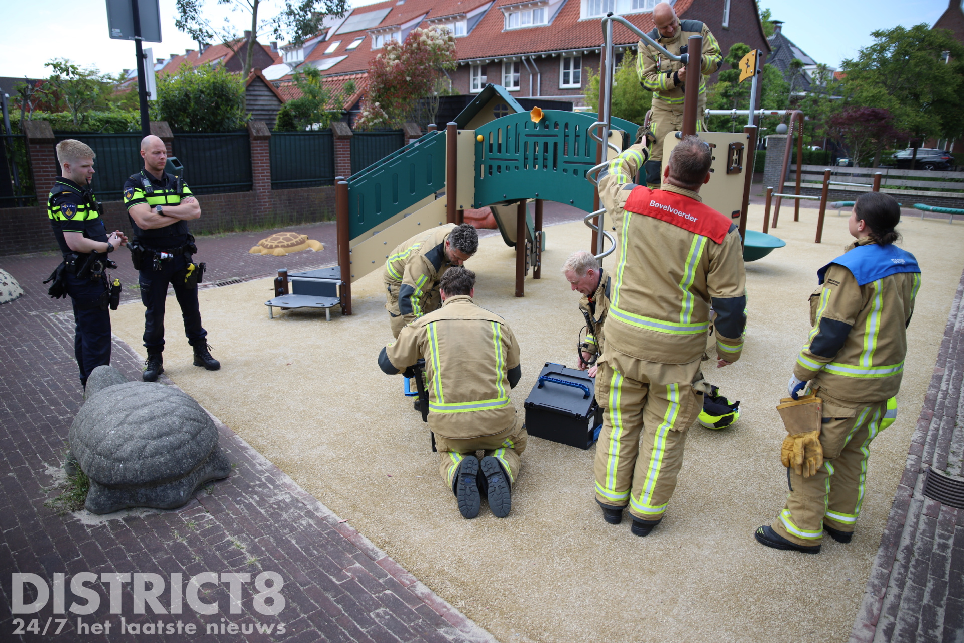 De melding kwam rond kwart voor vier binnen bij de meldkamer brandweer. Een kindje zat namelijk vast in een speeltoestel en kwam er niet meer uit. Hiervoor is de brandweer uitgerukt om het kindje te bevrijden.