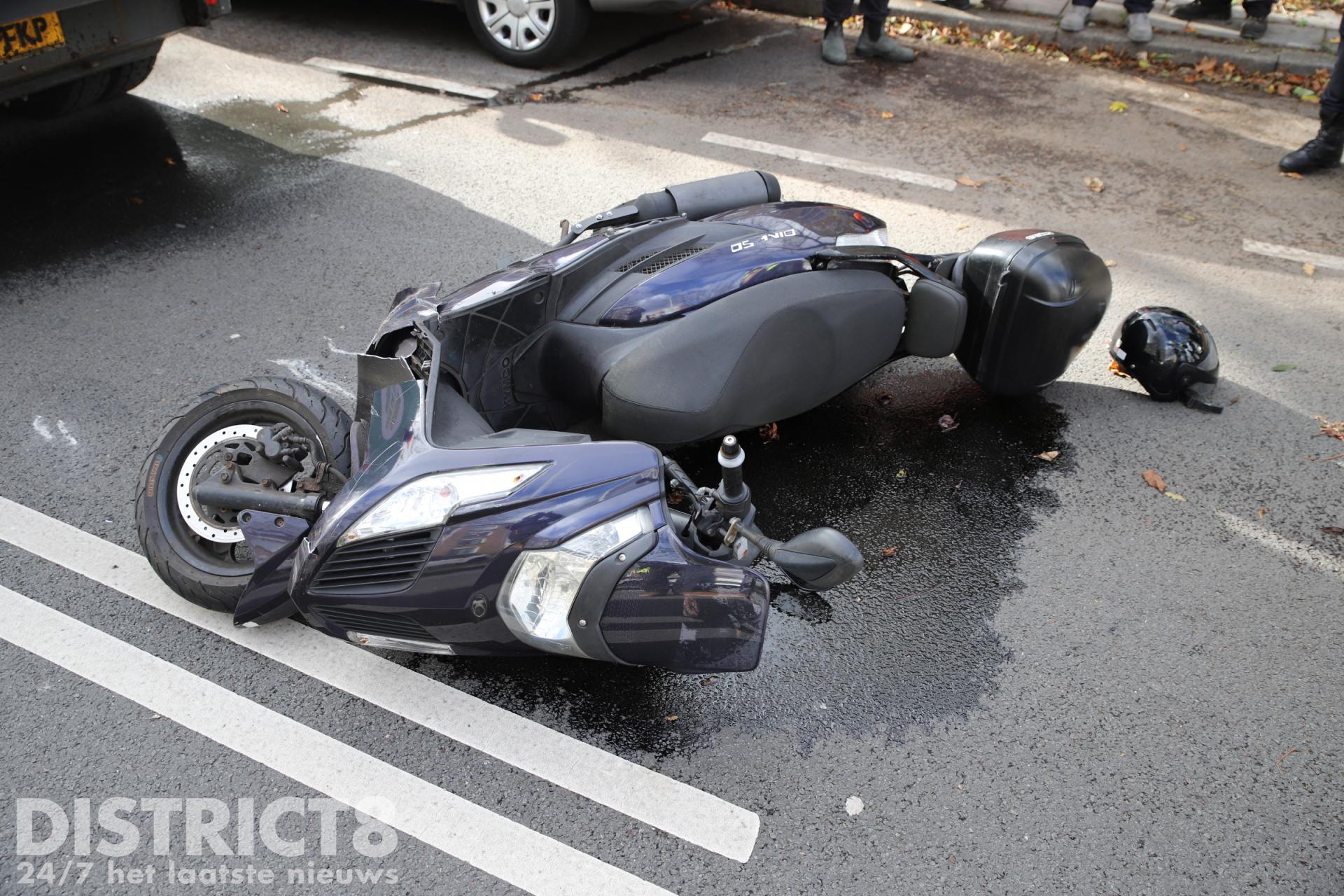 De scooterrijder kwam door nog onbekende oorzaak achterop de langzaam rijdende veegwagen terecht. De klap was dusdanig hard dat de bestuurder gewond raakte.
