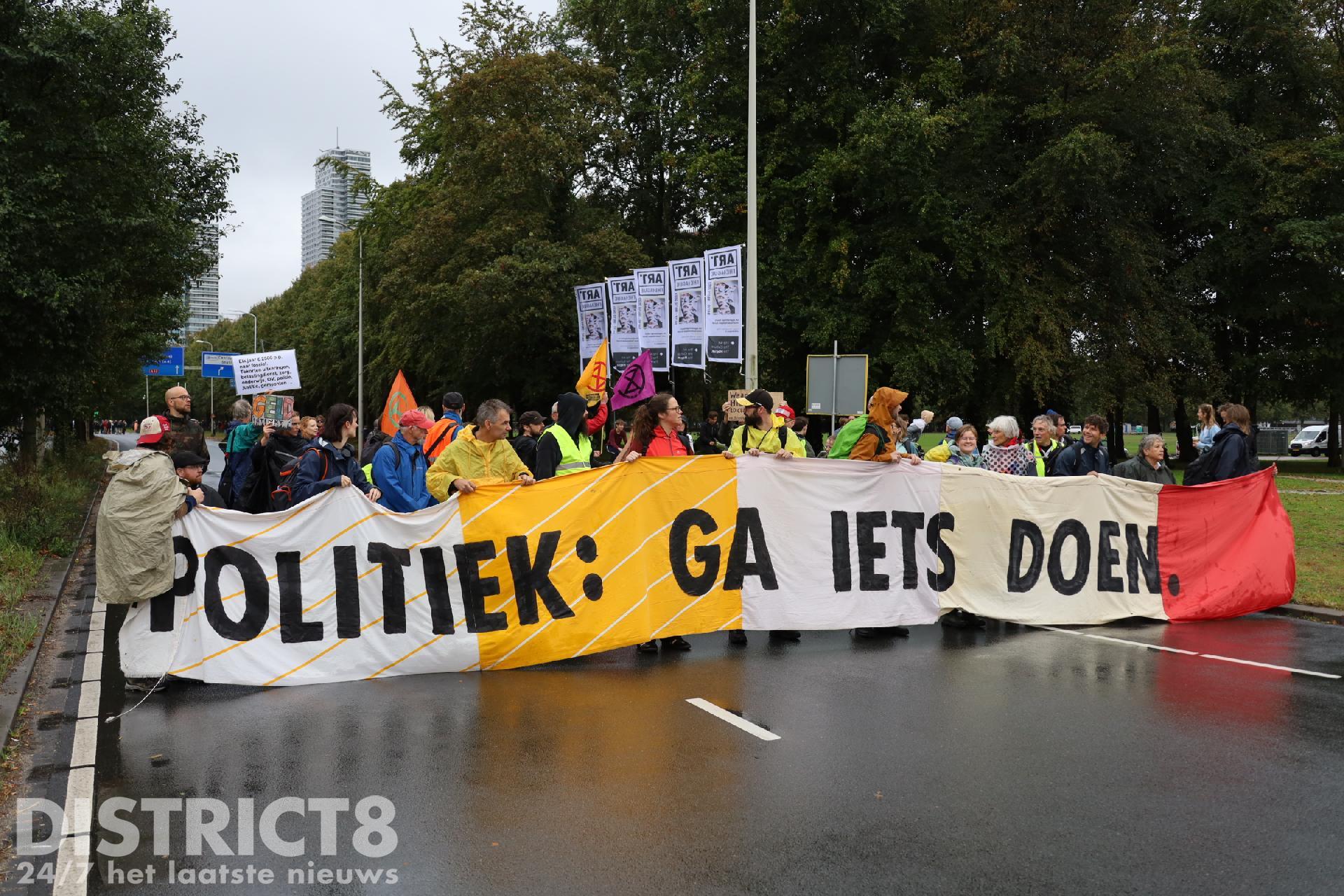 Den Haag – Extinction Rebellion blokkeert 29 september voor de 21e dag de A12 bij Den Haag. Ongeveer 100 demonstranten betraden de snelweg en zijn richting de tunnelbak gelopen.