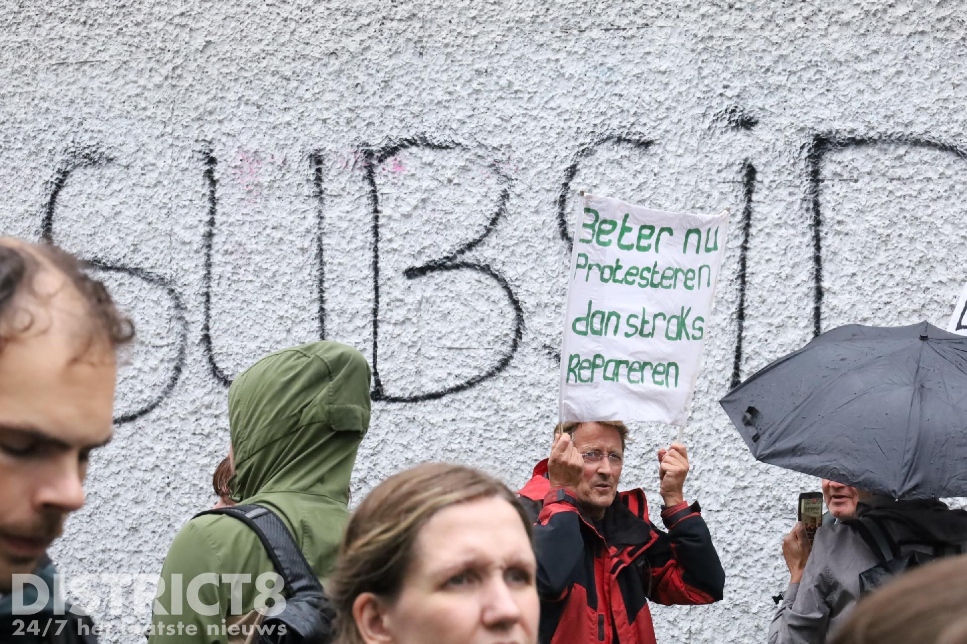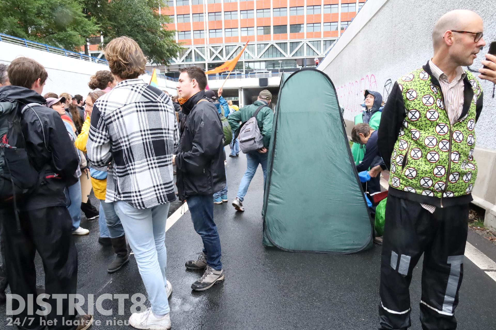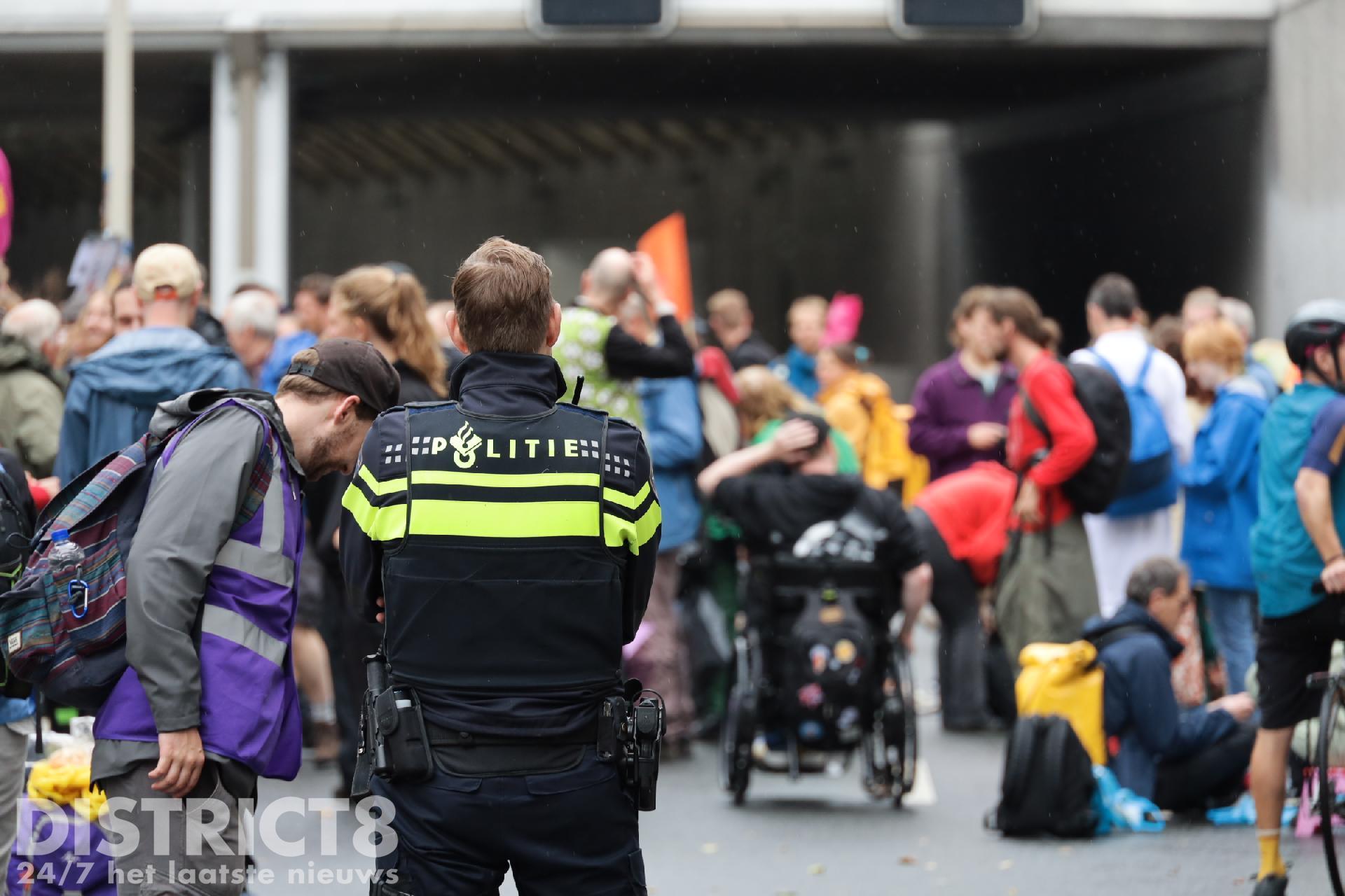 Slechts twee agenten waren om 12.00 uur aanwezig. Zo konden de demonstranten gelijk de tunnelbak inlopen t.h.v. het gebouw van de Tweede Kamer.