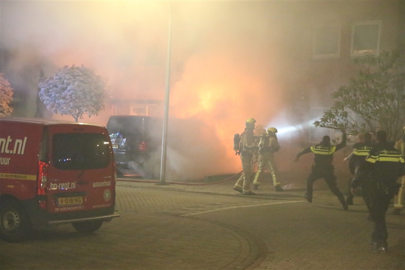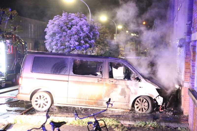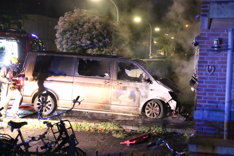 Een buurtbewoner ontdekte de brandstichting en belde de brandweer. Hij kon nog net een auto op hoge snelheid zien wegrijden. De brandweer kwam met spoed ter plaatse. Het busje stond dicht tegen een woning geparkeerd, waardoor de hoge vlammen al snel voor veel schade aan de woning zorgde. Via een raam kwam de brand in de woning terecht, maar richtte aldaar weinig schade aan. De brandweer had het vuur snel onder controle.