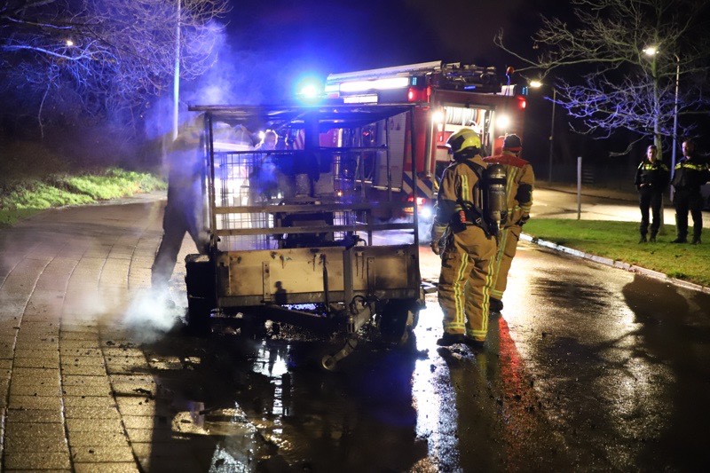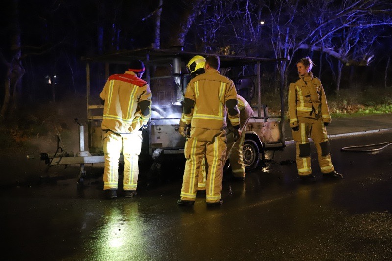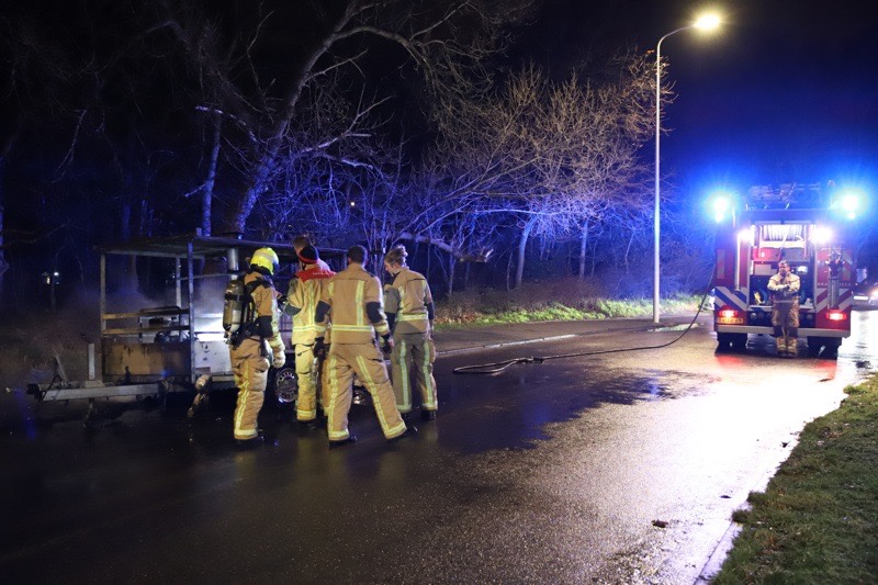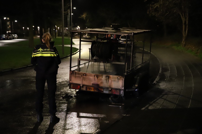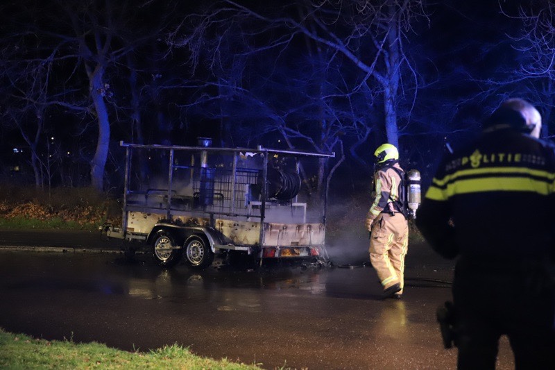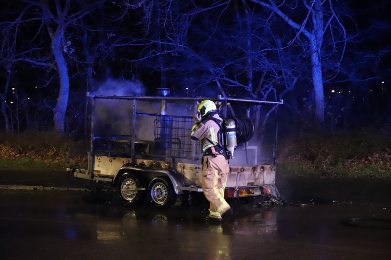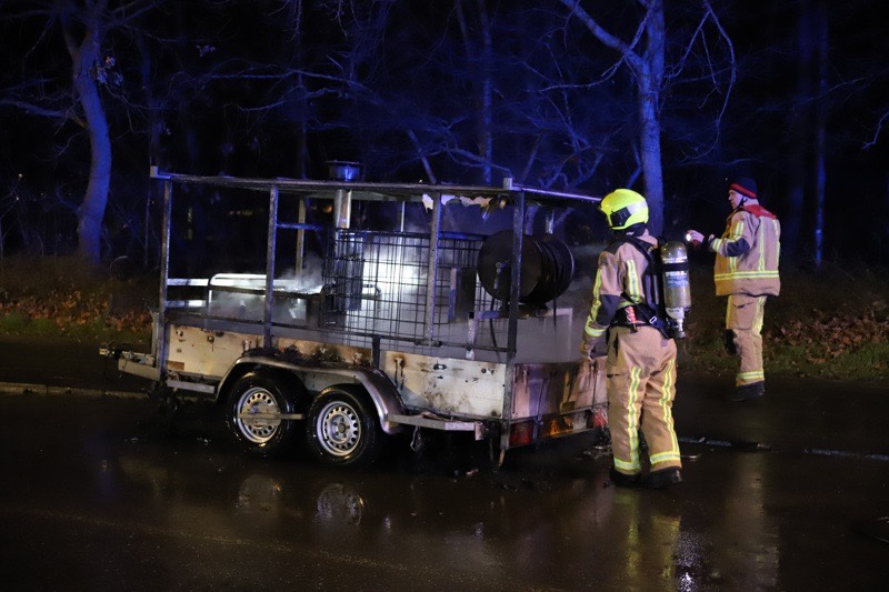 Even na half één ontdekte een voorbijganger dat er een geparkeerde aanhanger in brand stond. Direct werden de hulpdiensten gebeld.