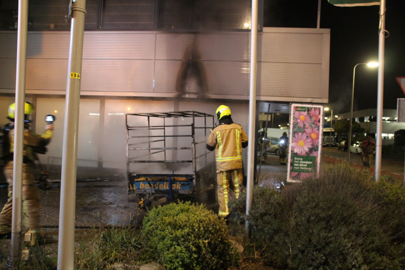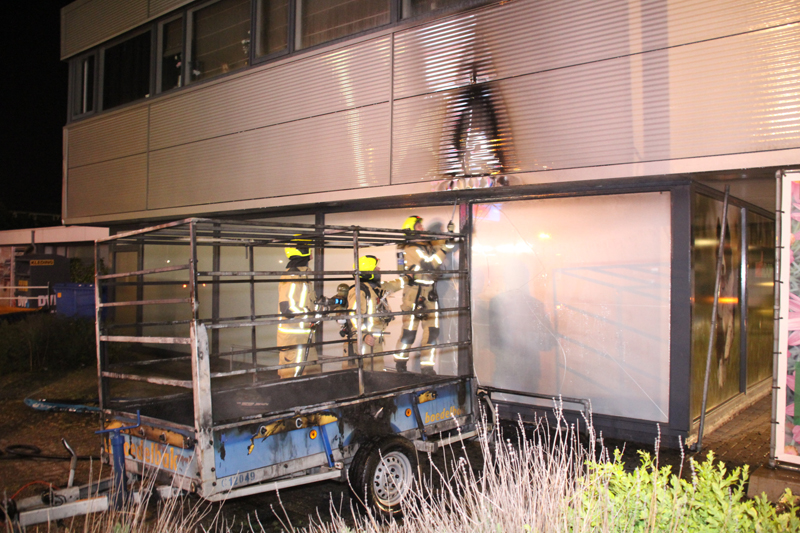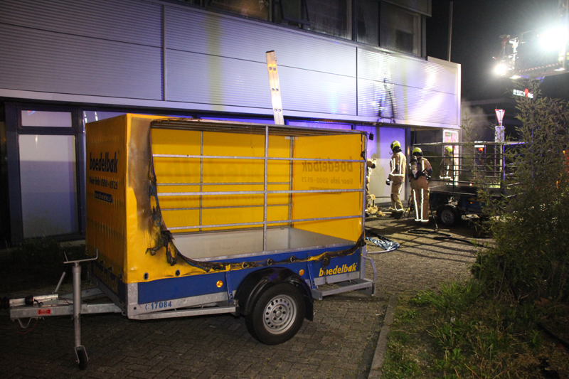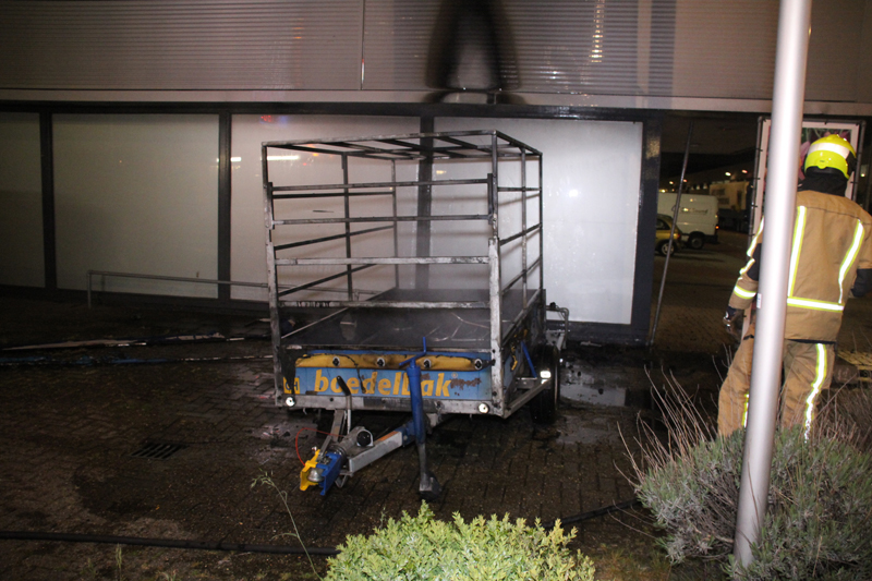 De aanhanger is aangestoken. Over de daders(s) is niks bekend.