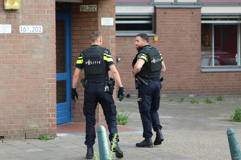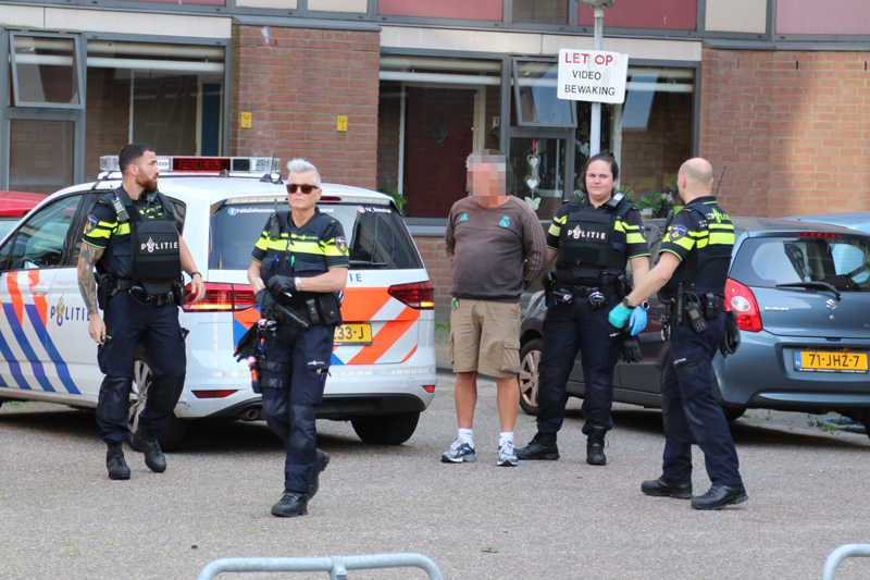 De gealarmeerde politie kwam met spoed ter plaatse en droeg kogelwerende vesten. Er is door de politie één persoon aangehouden en vervoerd naar het politiebureau.
