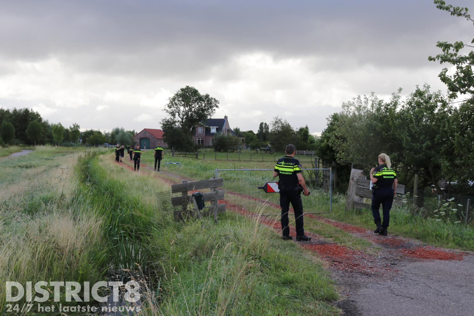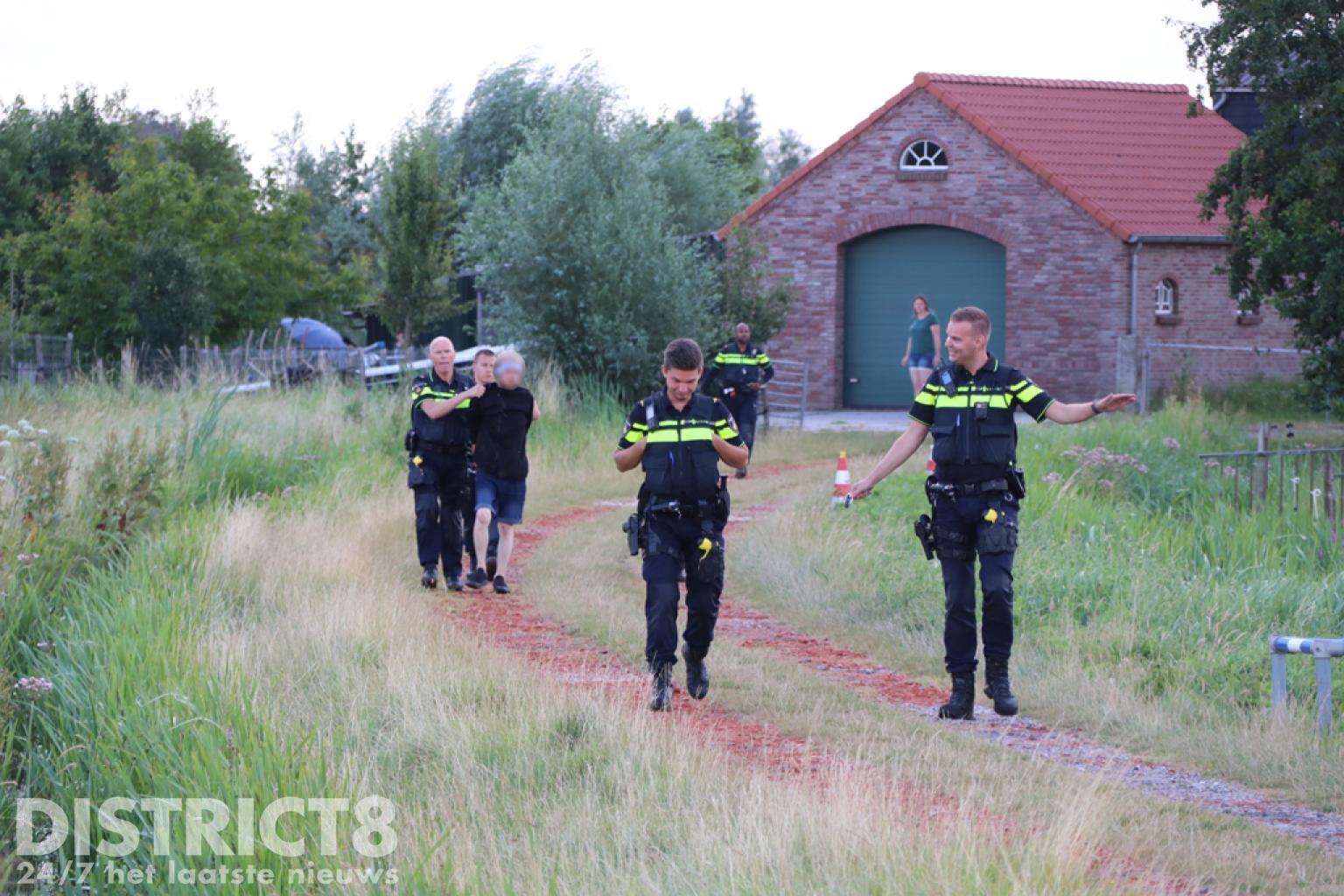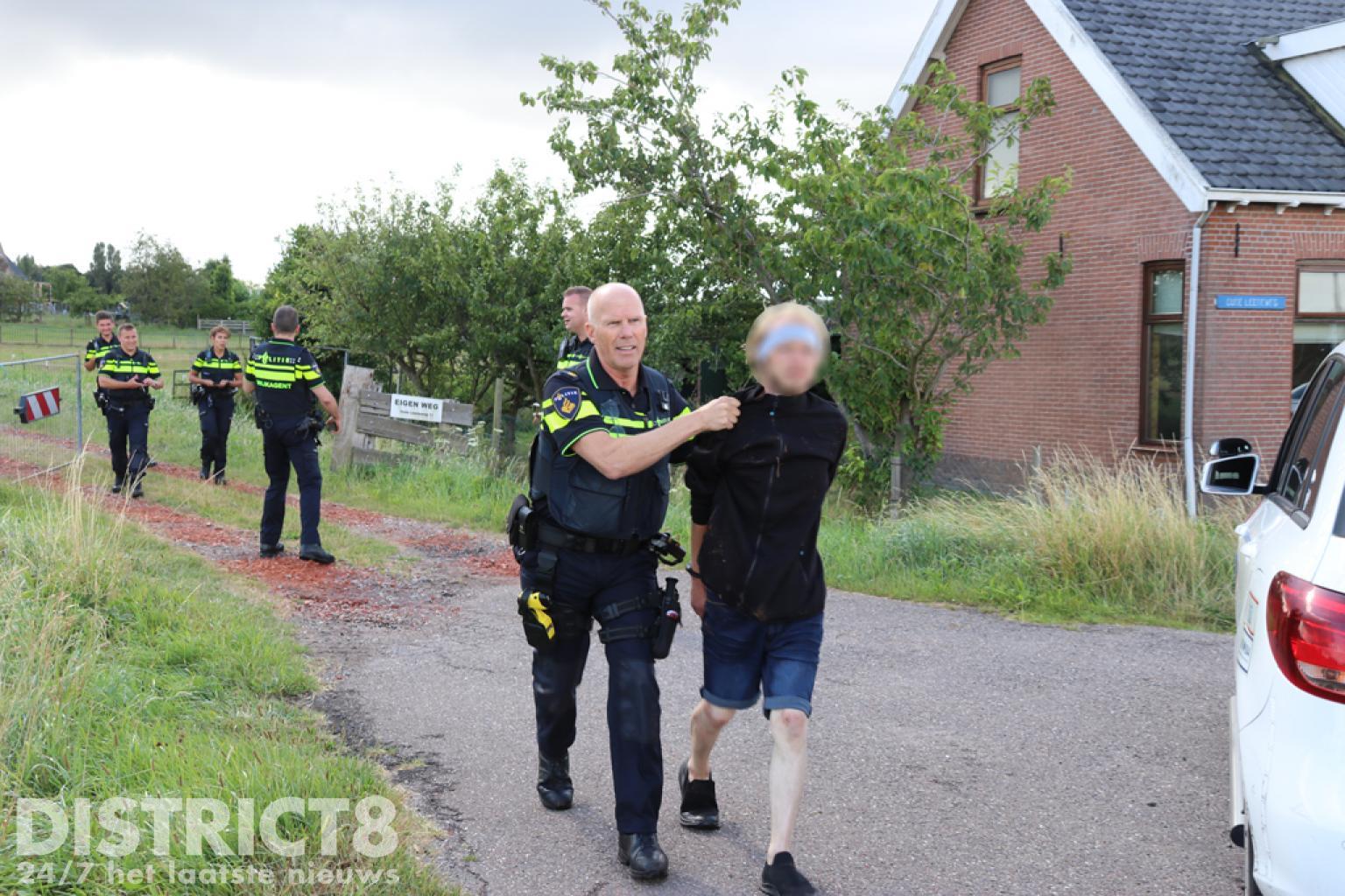 Na een klein uurtje was het raak: de verdachte werd aangehouden in een weiland in Oude Leede. Hij is afgevoerd richting het politiebureau voor verhoor.