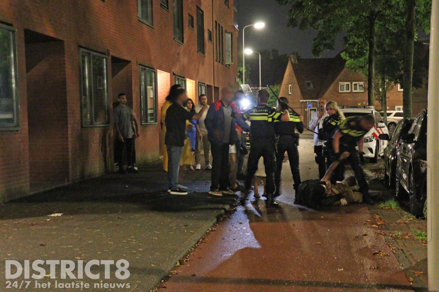 Voordat er een normaal gesprek gevoerd kon worden liepen de emoties hoog op, één persoon belemmerde de politie zo erg dat hij direct werd aangehouden. De man verzette zich tegen zijn aanhouding en de emoties van de andere aanwezigen liepen hoog op. Hierop hebben agenten hun wapenstok getrokken. Ook werd er door een agent ‘assistentie collega’ gevraagd aan de meldkamer, waarop in korte tijd de hele straat vol met politiewagens stond.