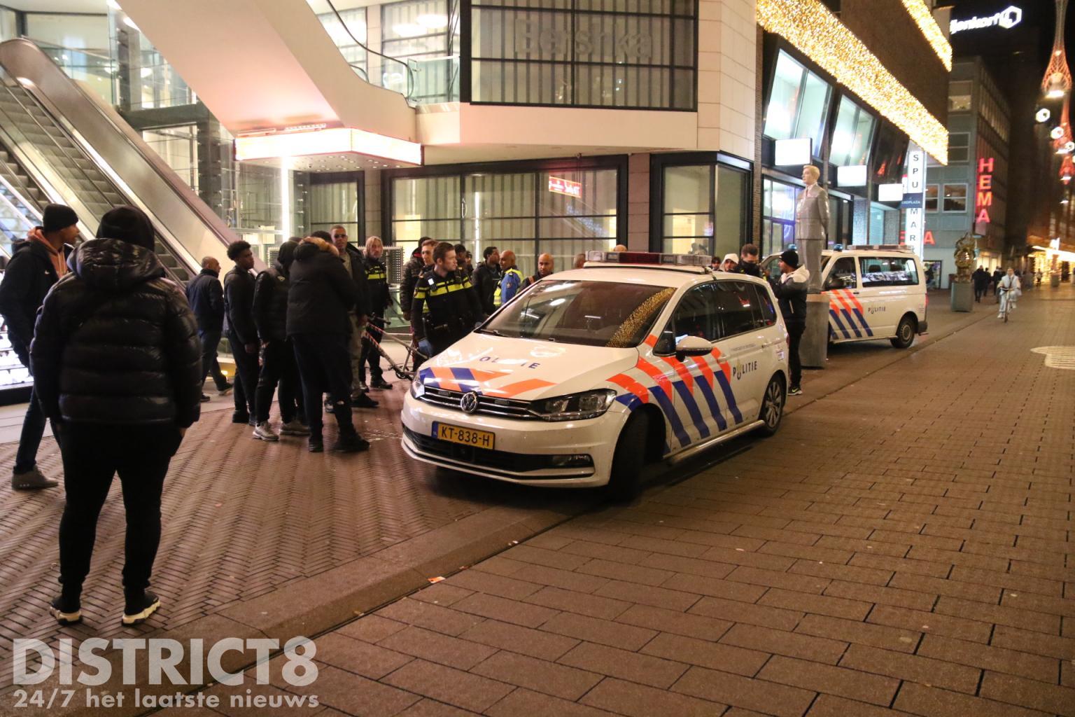 De groep werd door de politie gefouilleerd en gecontroleerd. Tijdens de controle werd één van de jongeren aangehouden. Waarvoor hij is aangehouden, is nog onbekend.