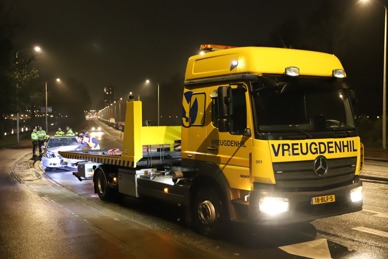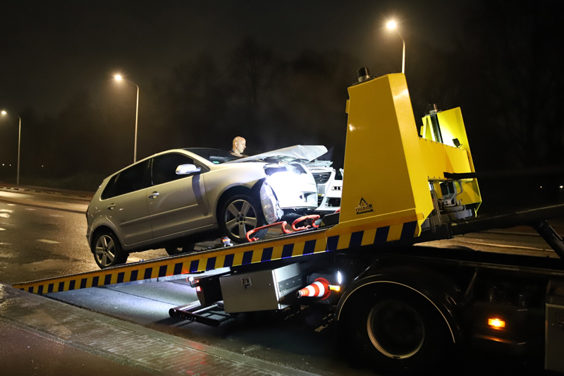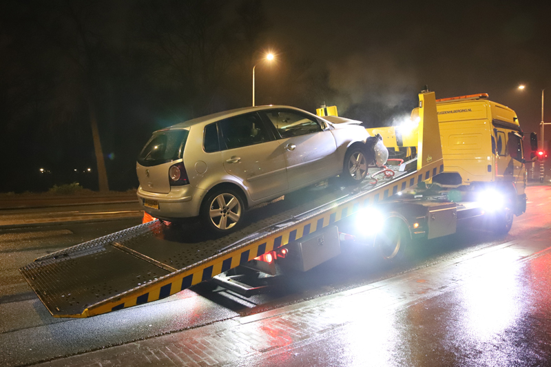 Een berger heeft de zwaar beschadigde auto afgevoerd.