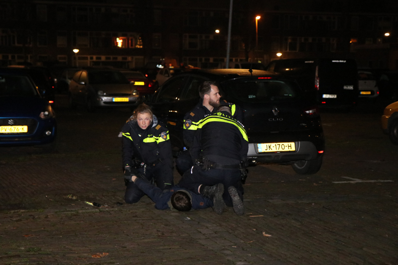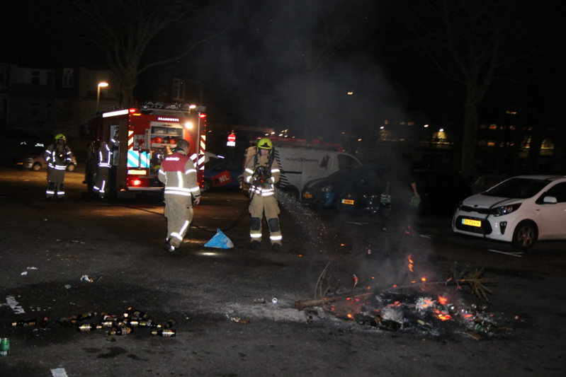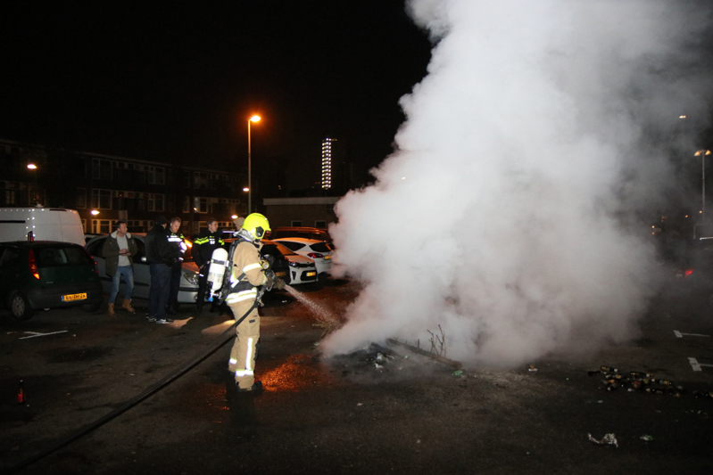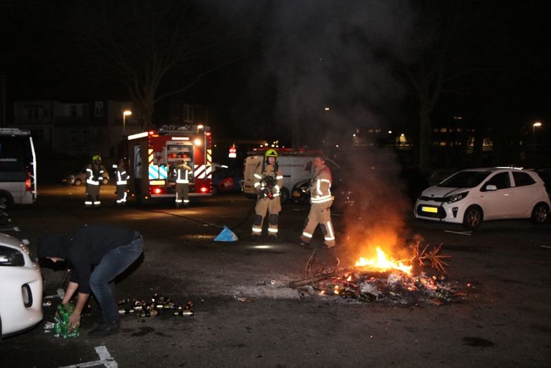 De groep zette het direct op een lopen. Door de politie zijn zeker twee personen aangehouden. De brandweer heeft later het brandje geblust.