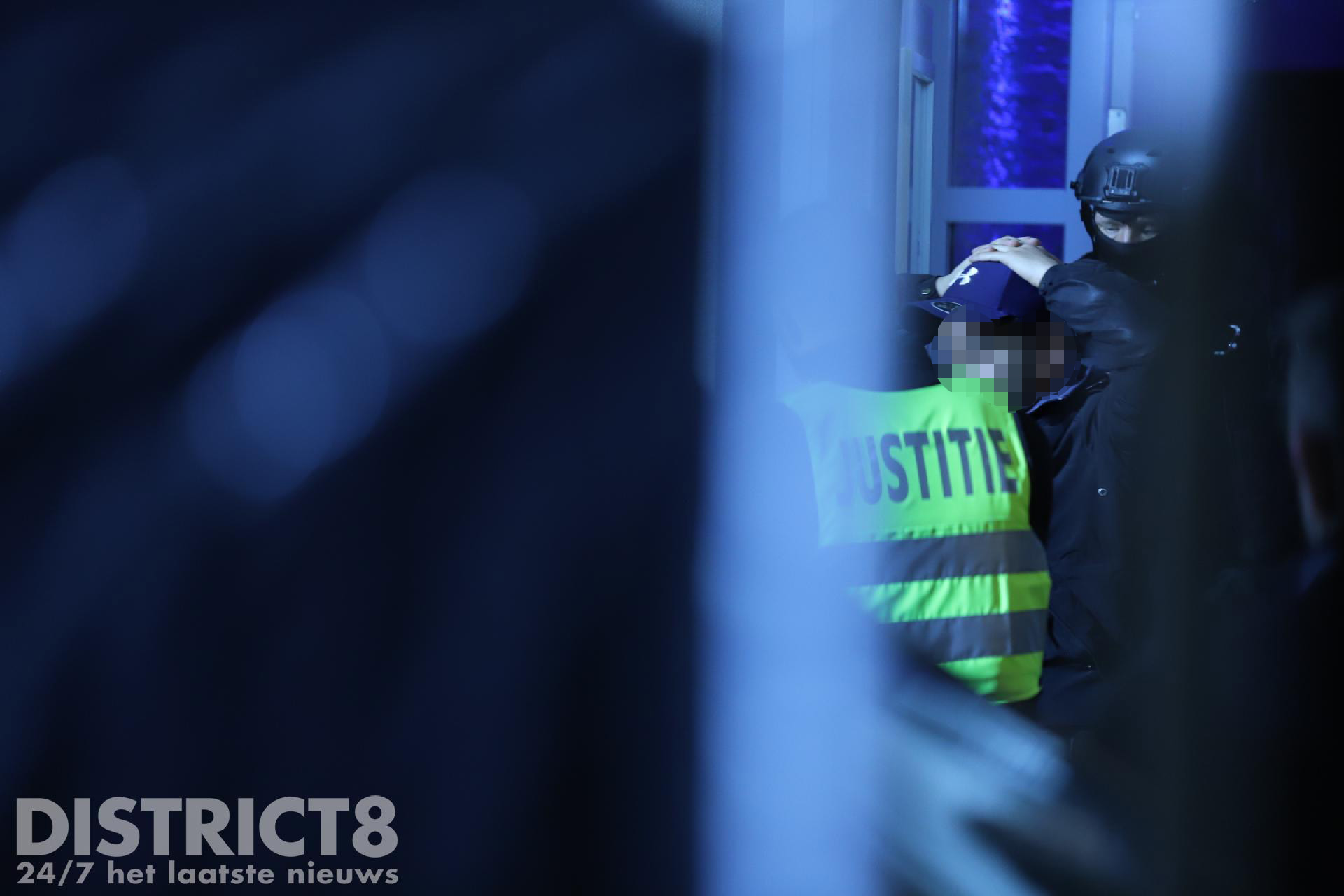 Vervolgens zijn alle aanwezigen door de AE uit het pand gehaald, buiten stond een speurhond klaar die de personen die uit het pand kwamen heeft gecontroleerd. Hierna werden de aanwezigen apart genomen en volledig gefouilleerd.