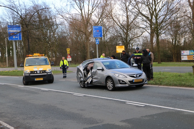 De auto boorde zich in de rechterflank van deze auto. Een ambulance is nog opgeroepen. De inzittenden zijn nagekeken door het ambulancepersoneel, maar zijn niet gewond geraakt bij dit ongeval.