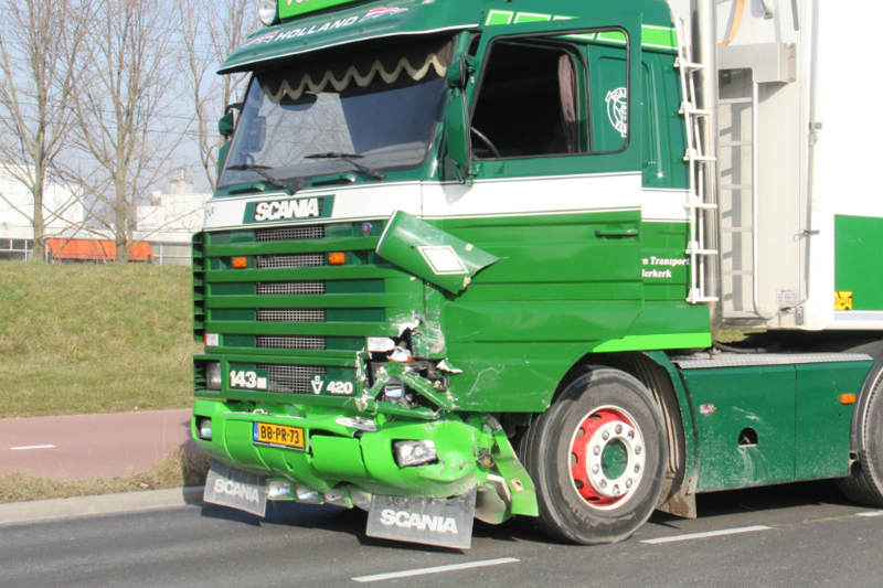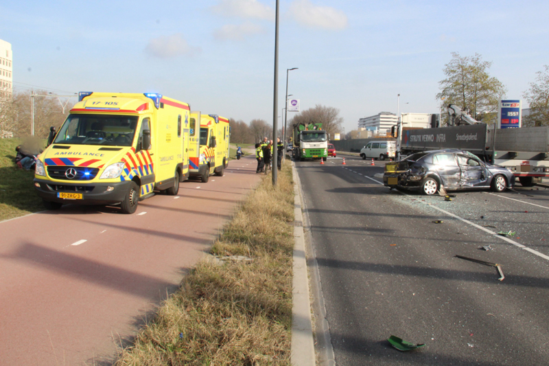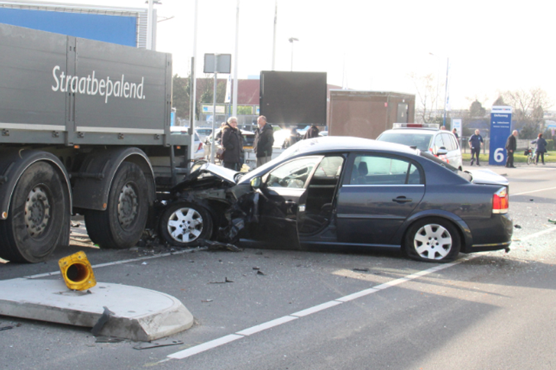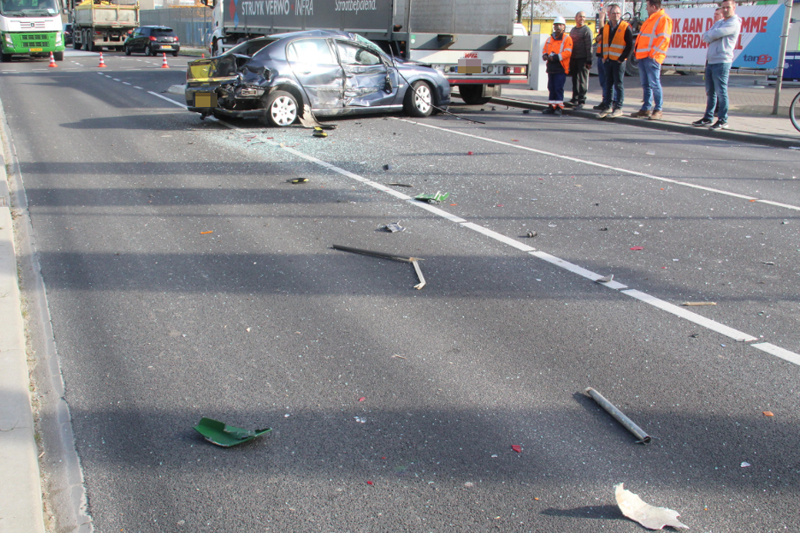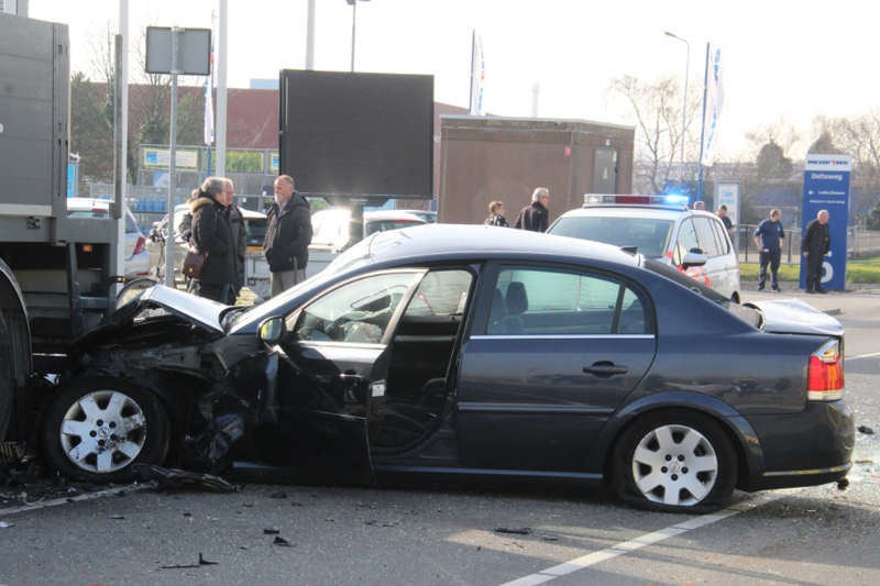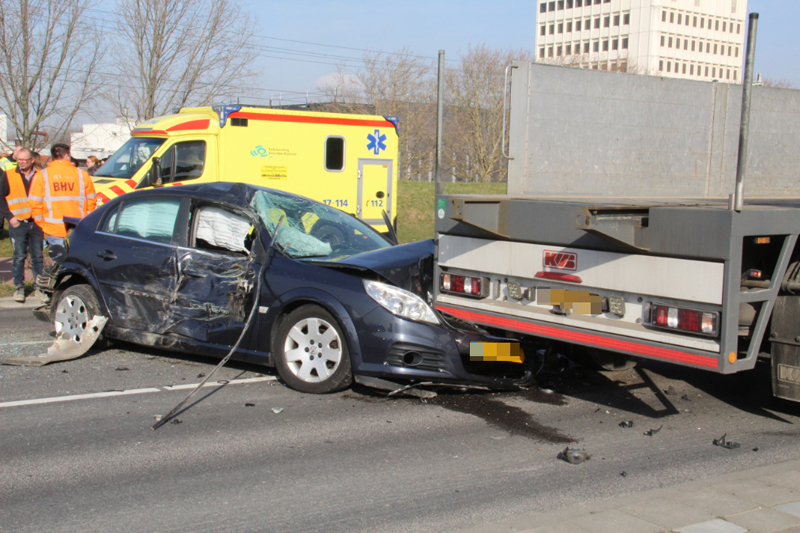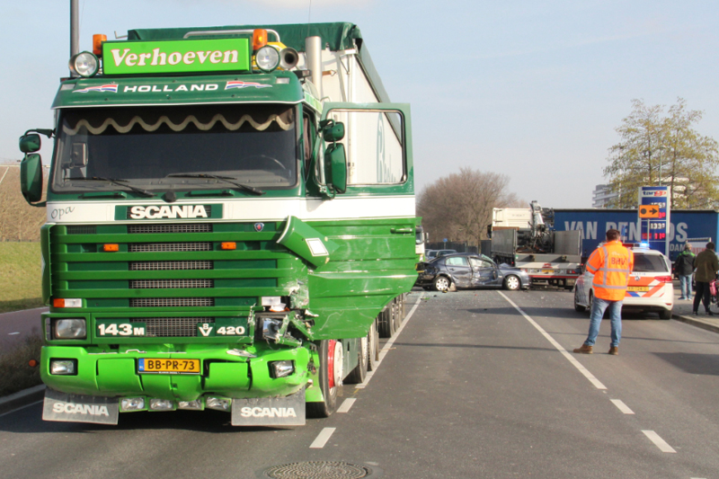 Aanrijding tussen auto en vrachtwagens Deltaweg Vlaardingen