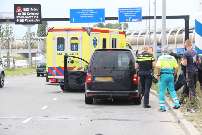 Vlaardingen / Schiedam – Op Vijfsluizen, vanuit Schiedam richting Vlaardingen heeft dinsdagmiddag een aanrijding plaats gevonden tussen een auto en een vrachtwagen. Een ambulance is ter plaatse gekomen om één inzittende te controleren. Vanuit Schiedam richting Vlaardingen zijn tijdelijk twee rijstroken afgesloten geweest. De auto is bij de aanrijding dermate beschadigd geraakt dat deze is weggetakeld.