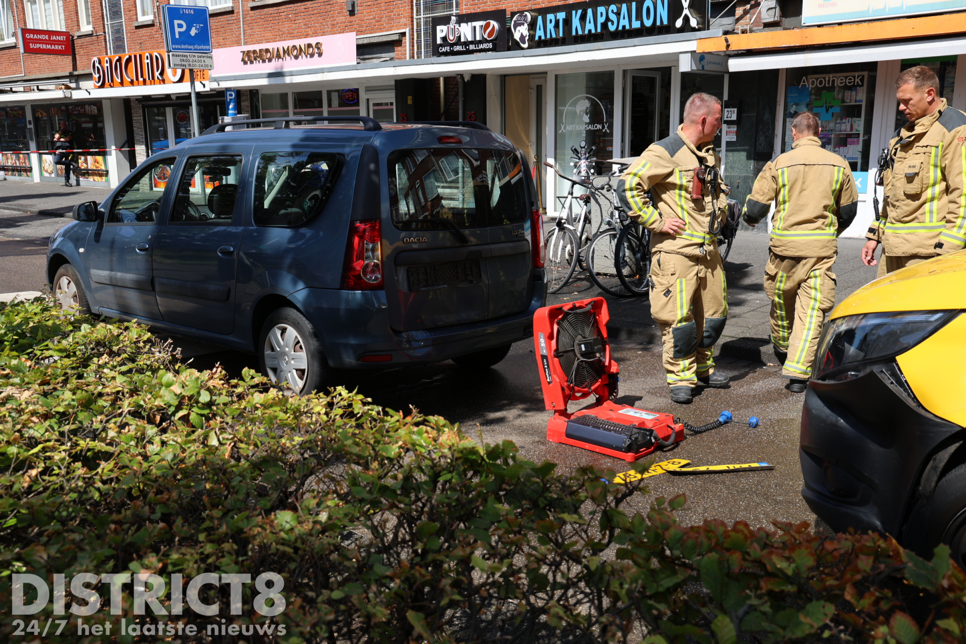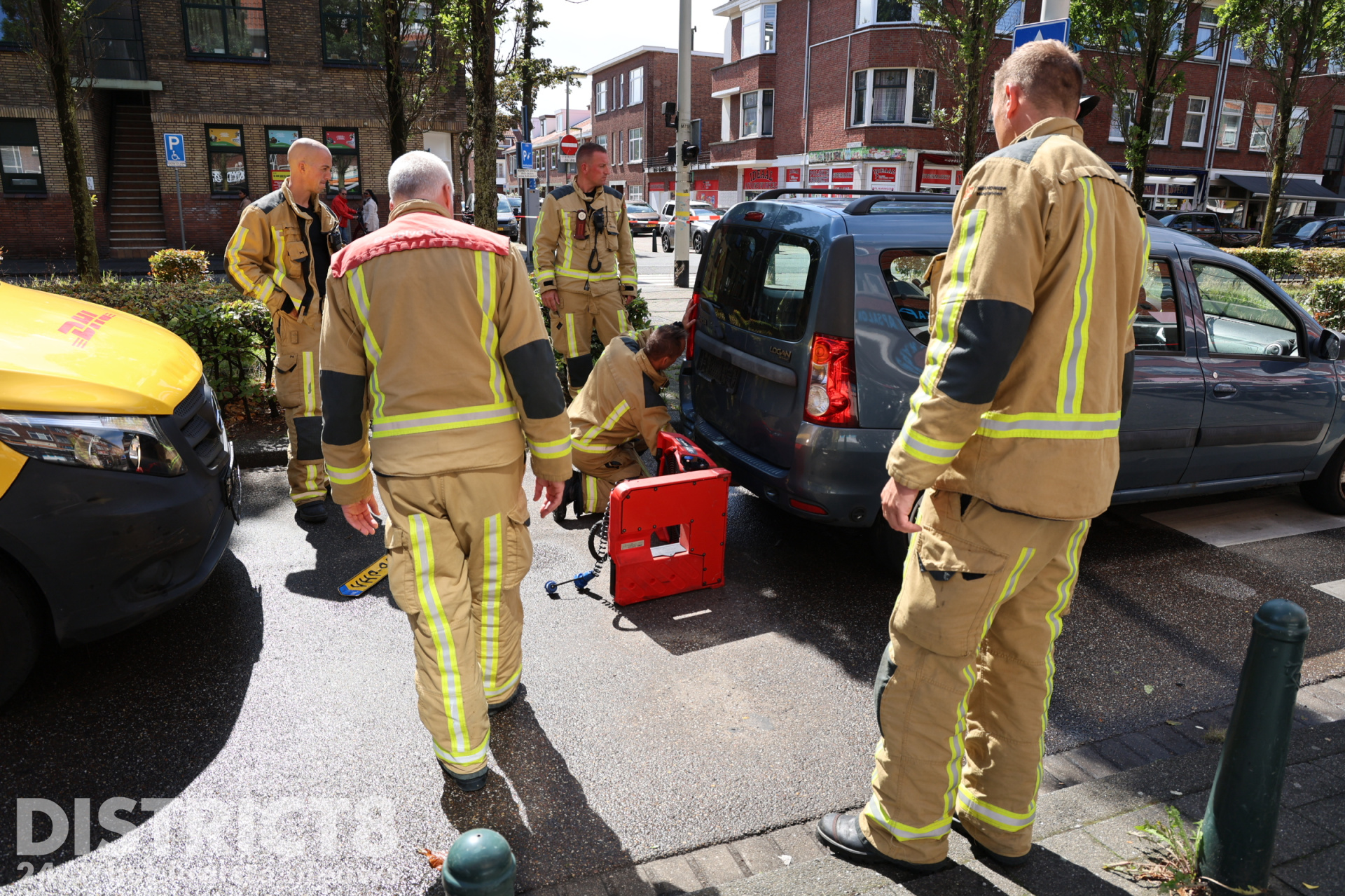 De brandweer kwam met spoed ter plaatse en begon direct met het uitvoeren van metingen rondom het voertuig. De politie sloot de straat af vanwege het incident.