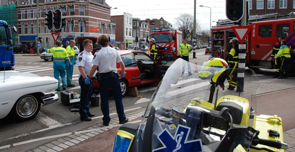 Den Haag – Op de kruising Valkenbosplein/Beeklaan heeft maandagmiddag 15 april een aanrijding plaatsgevonden tussen 2 personen auto’s. Naast 2 ambulances en een motorambulance kwam ook de brandweer ter plaatse omdat er mogelijk sprake was van beknelling. Ter plaatse bleek er echter geen sprake van beknelling, 2 slachtoffers zijn in de ambulance nagekeken het is ons niet bekend of er iemand is vervoerd naar het ziekenhuis. De politie heeft kort onderzoek gedaan naar de aanrijding.