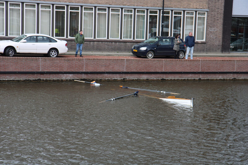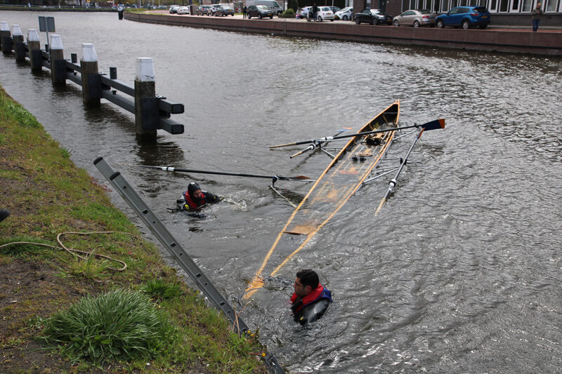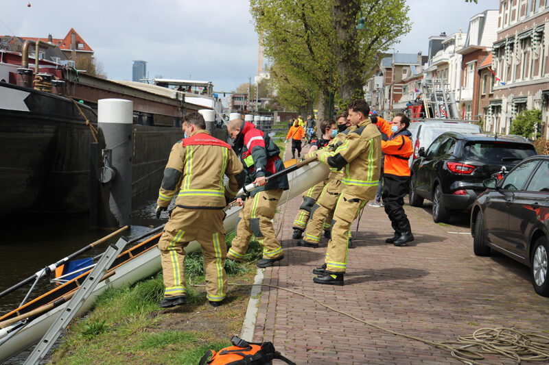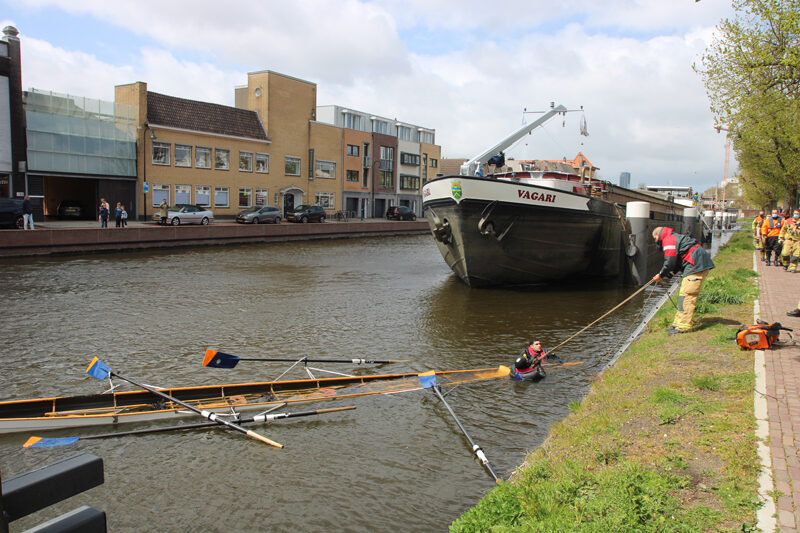 Ter plaatse had er een aanvaring plaatsgevonden tussen een binnenvaartschip en een roeiboot. De hulpdiensten kwamen met spoed ter plaatse.