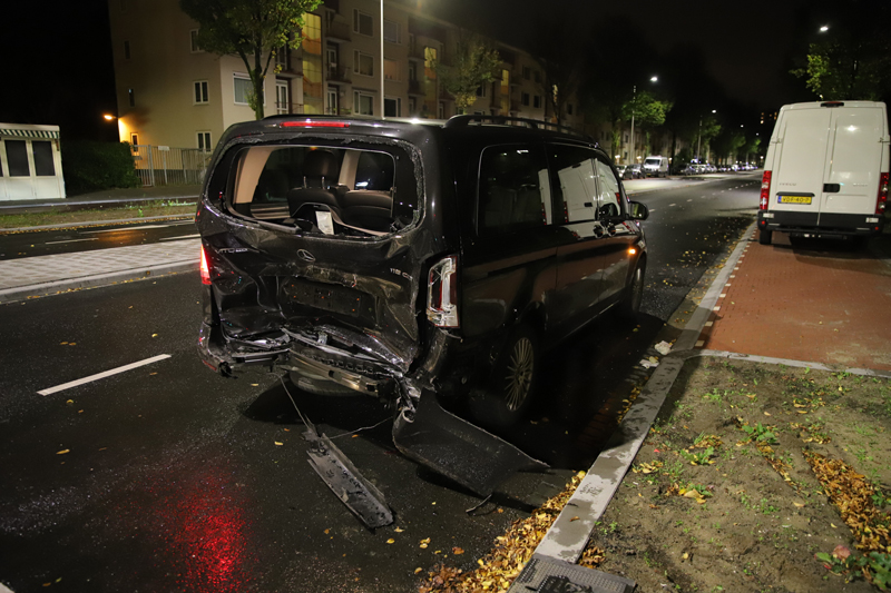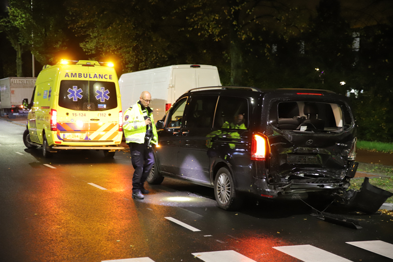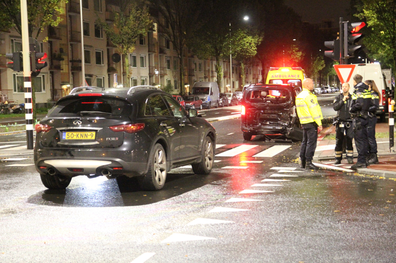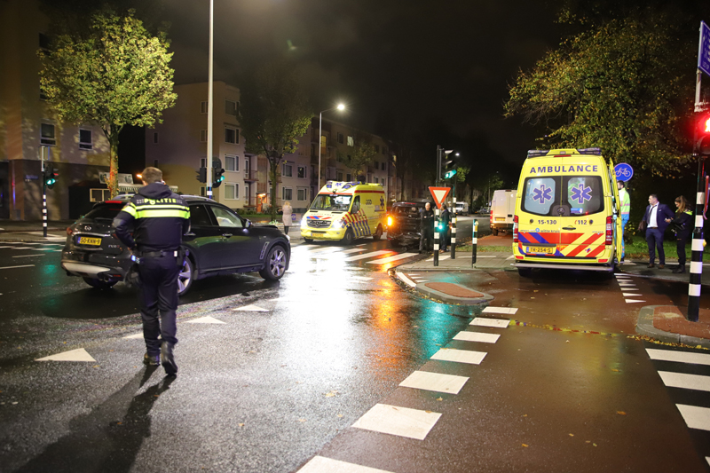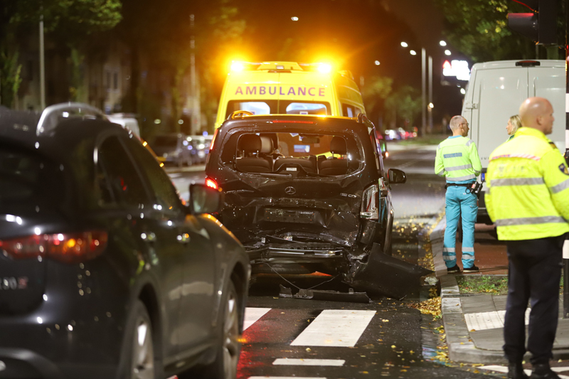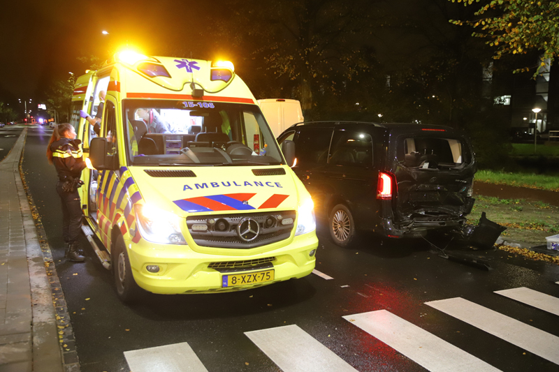 Den Haag – In de nacht van zaterdag op zondag 27 oktober heeft er op de kruising van de Erasmusweg met de Betje Wolffstraat een aanrijding plaatsgevonden tussen een personenauto en een taxi-busje.