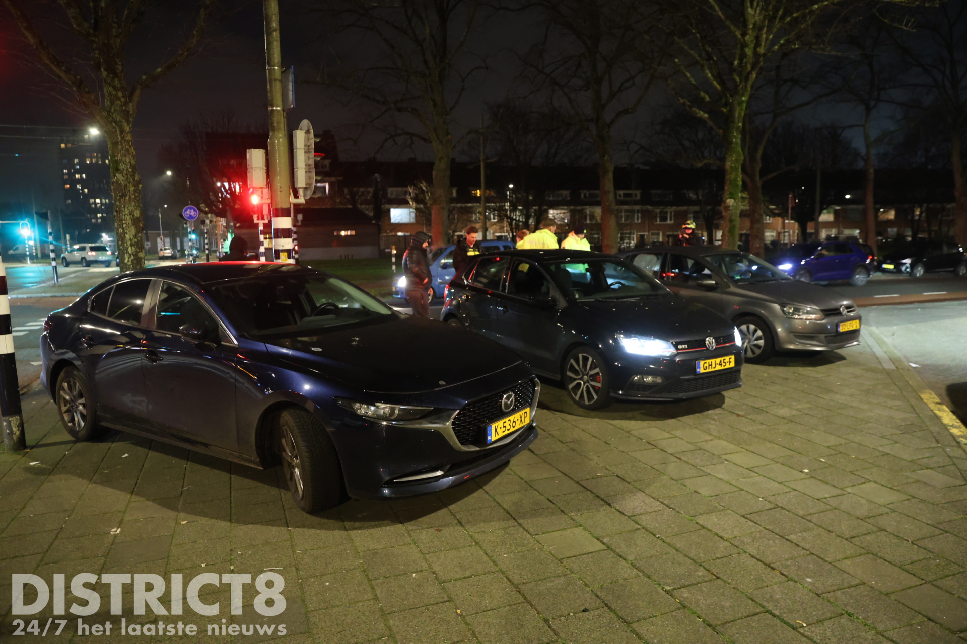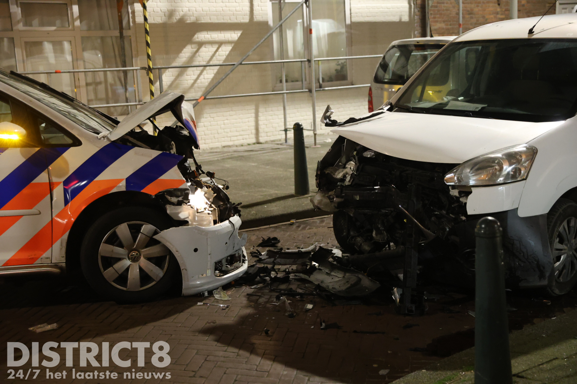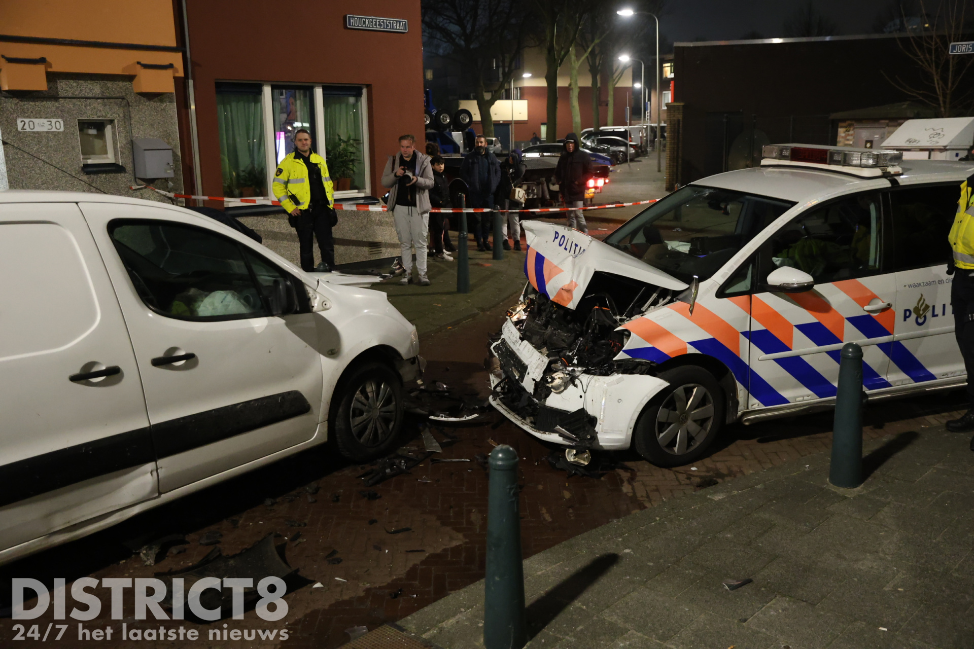 Hij sloeg linksaf de Wouwermanstraat in en direct daarna linksaf de Houckgeeststraat in. Aan het einde van deze straat, bij de kruising met de Mijtensstraat, kwam een politieauto van rechts tegemoet. In plaats van te stoppen, reed de verdachte met hoge snelheid frontaal in op de politieauto. Door de aanrijding kon de verdachte niet verder rijden met het voertuig. De agenten wisten de man daarop aan te houden. De man zit voorlopig vast.