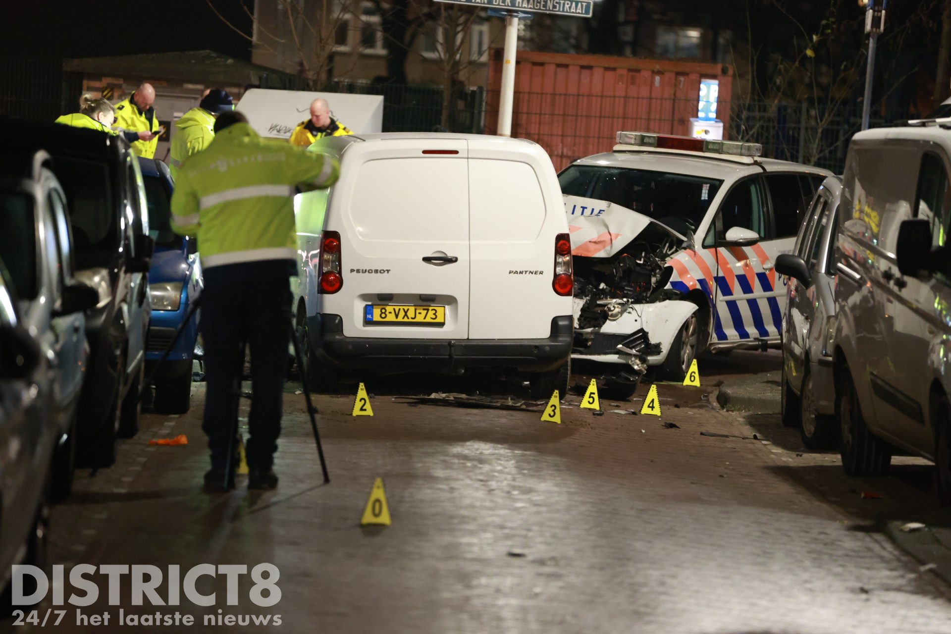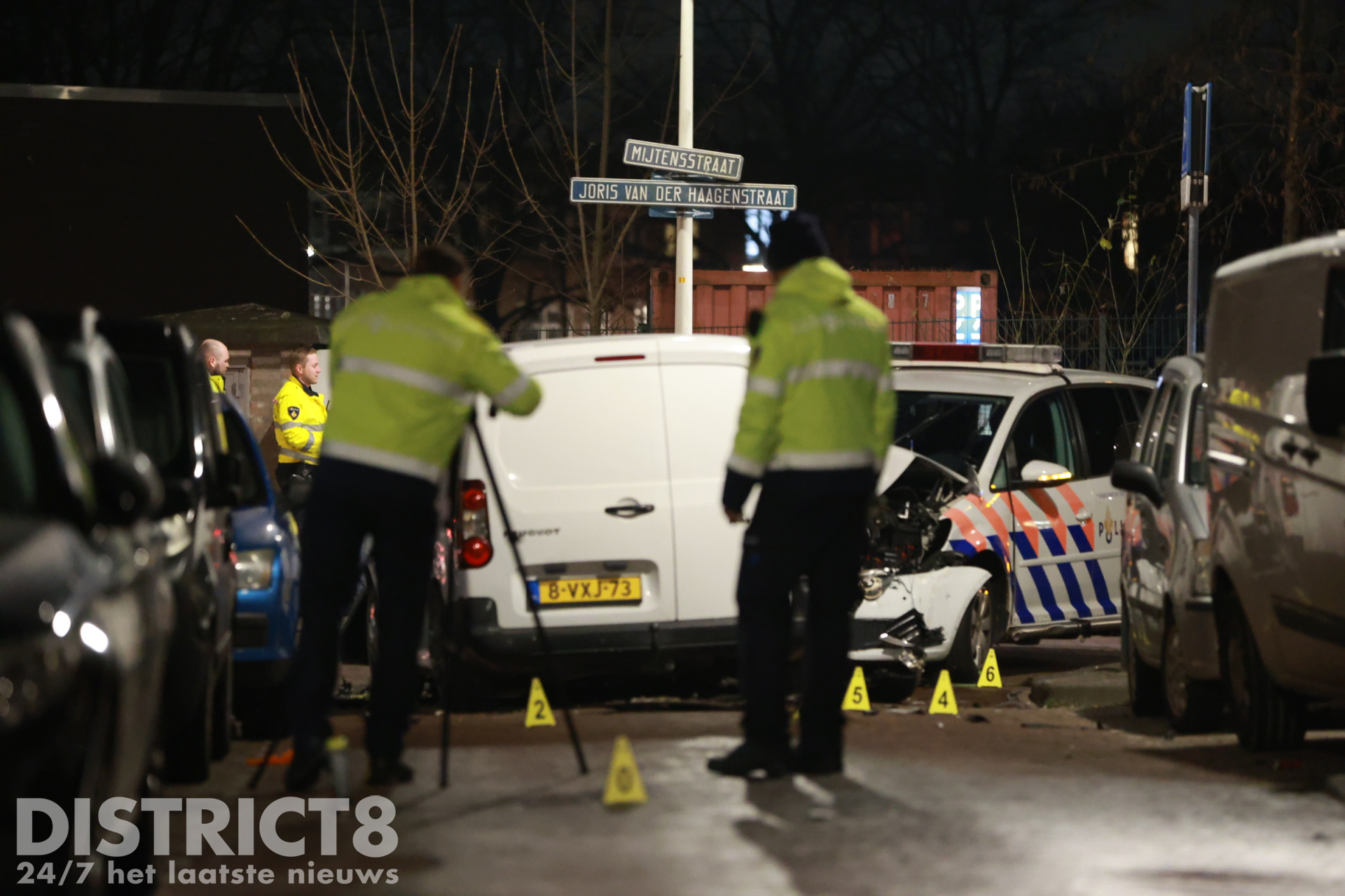 De FOV (Forensische Opsporing Verkeer) is ter plaatse gekomen en heeft onderzoek gedaan op de Wouwermanstraat bij de kruising met de Parallelweg en op de kruising van de Houckgeeststraat en de Mijtensstraat. Een berger van Team Transport van de politie is ingeschakeld om zowel de politieauto als de gestolen bestelbus af te slepen voor nader onderzoek.
