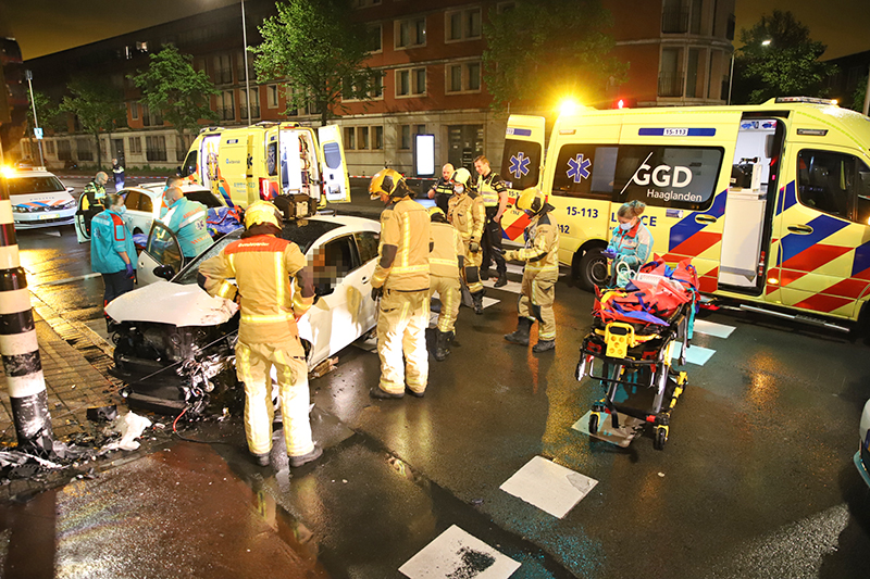 Achtervolging met hoge snelheid eindigt in crash; twee gewonden Vaillantlaan Den Haag