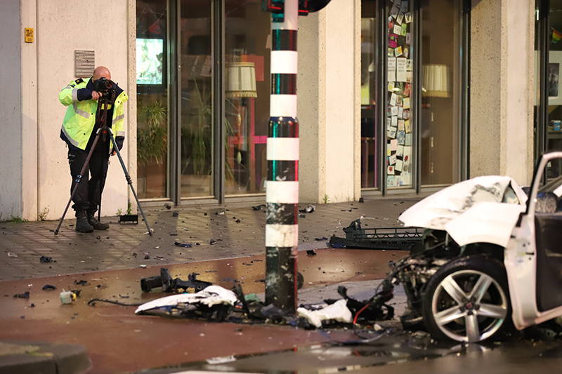 Volgens getuigen kwam de witte auto met snelheden van boven de 100 km/u het kruispunt van de Vaillantlaan met de Hoefkade over. Hier verloor de bestuurder de macht over het stuur en knalde met volle snelheid tegen een verkeerspaal.