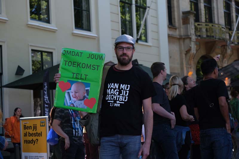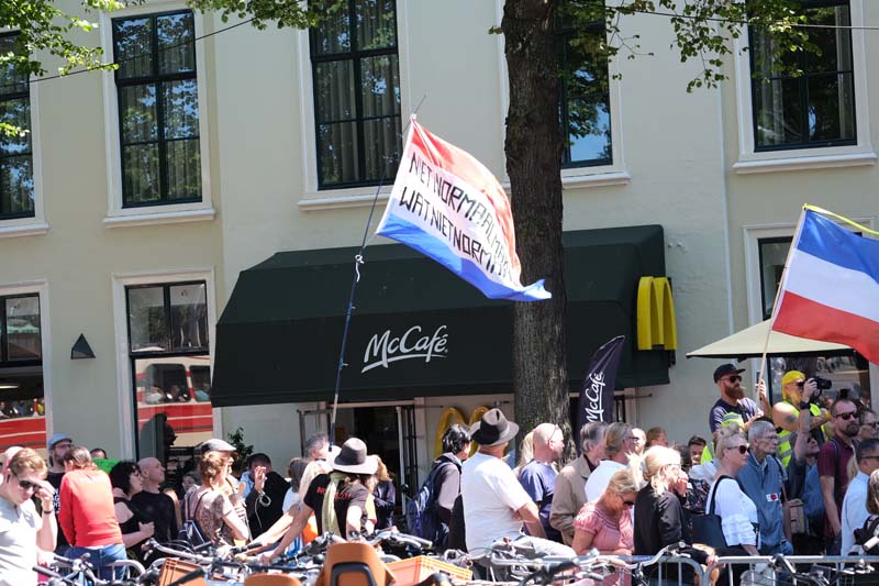 Boven Den Haag waren enige tijd vliegtuigjes te zien die met spandoeken overvlogen met daarop teksten zoals: ”Stop 1,5 meter, Viruswaanzin.”