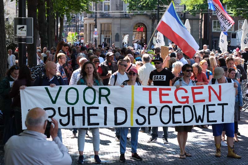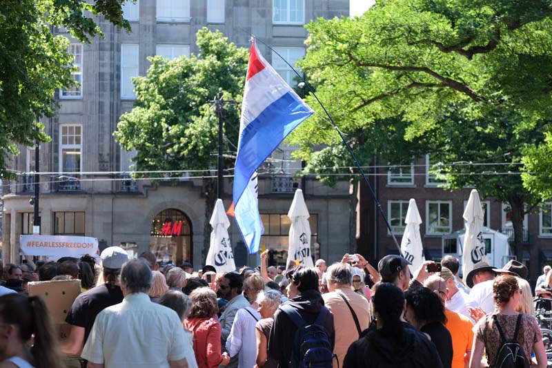 Den Haag – Zondagmiddag 12 juli zijn ongeveer 100 tot 150 demonstranten van de organisatie ”Viruswaanzin” in optocht door Den Haag gelopen tegen de corona maatregelen.