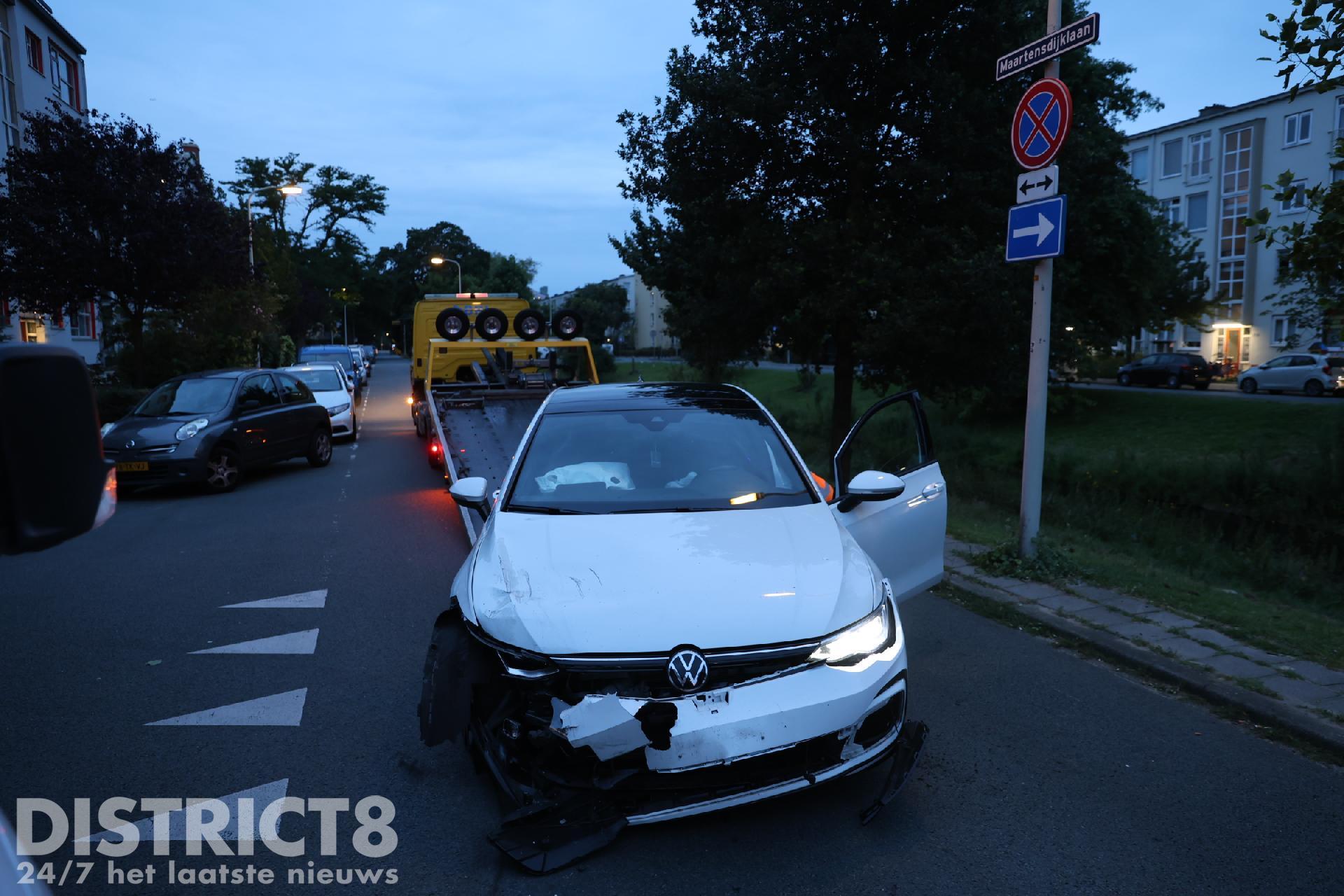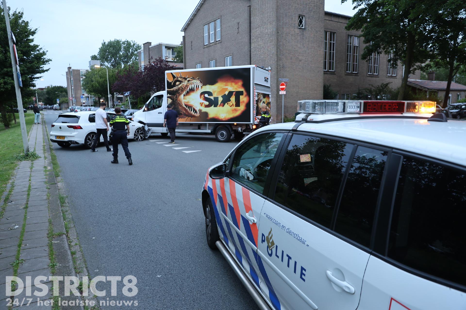 Den Haag – De bestuurder van een busje heeft op de Maartensdijklaan in Den Haag een automobilist over het hoofd gezien tijdens het afslaan, waardoor ze met elkaar in botsing kwamen.