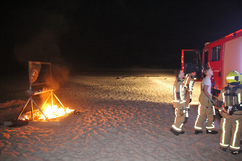 Bij aankomst van de brandweer bleek een toegangshek naar het strand afgesloten zijn met een slot. De brandweer zag zich genoodzaakt om het slot te forceren om zo naar de brand te kunnen. Nadat het hek geopend was, is de brandweer verder gereden naar het strand.
