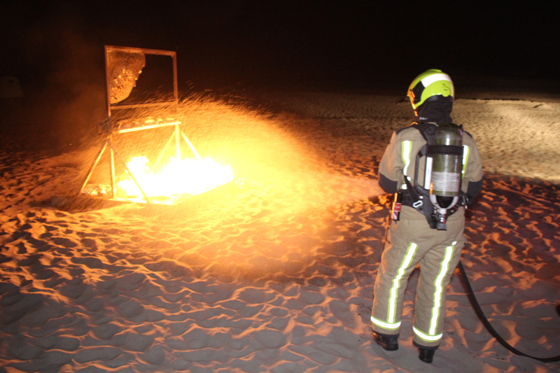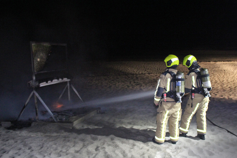 ‘s-Gravenzande – De brandweer is in de nacht van zondag op maandag opgeroepen voor een brand op het strand van ‘s-Gravenzande, ter hoogte van strandopgang Arendsduin.