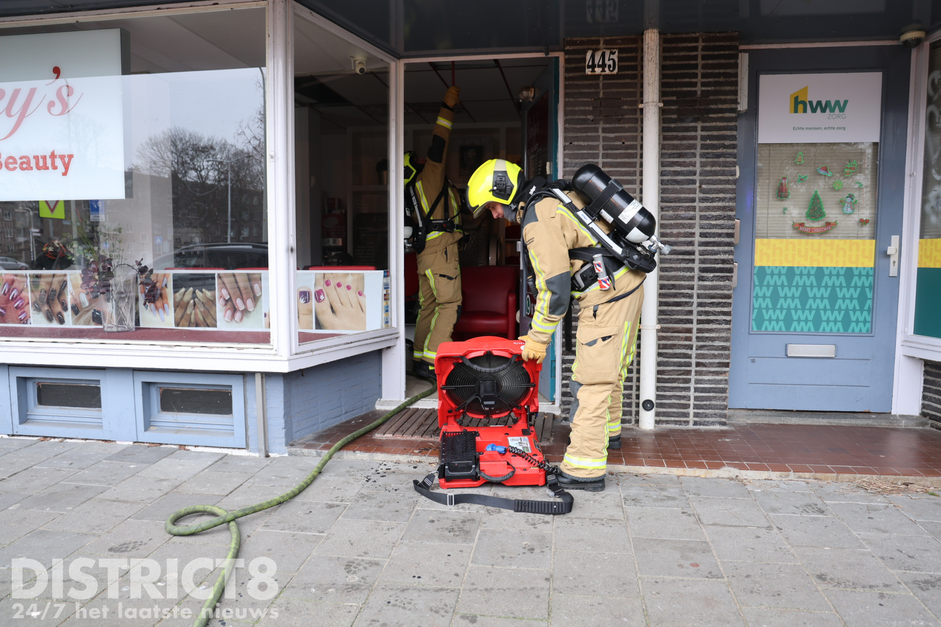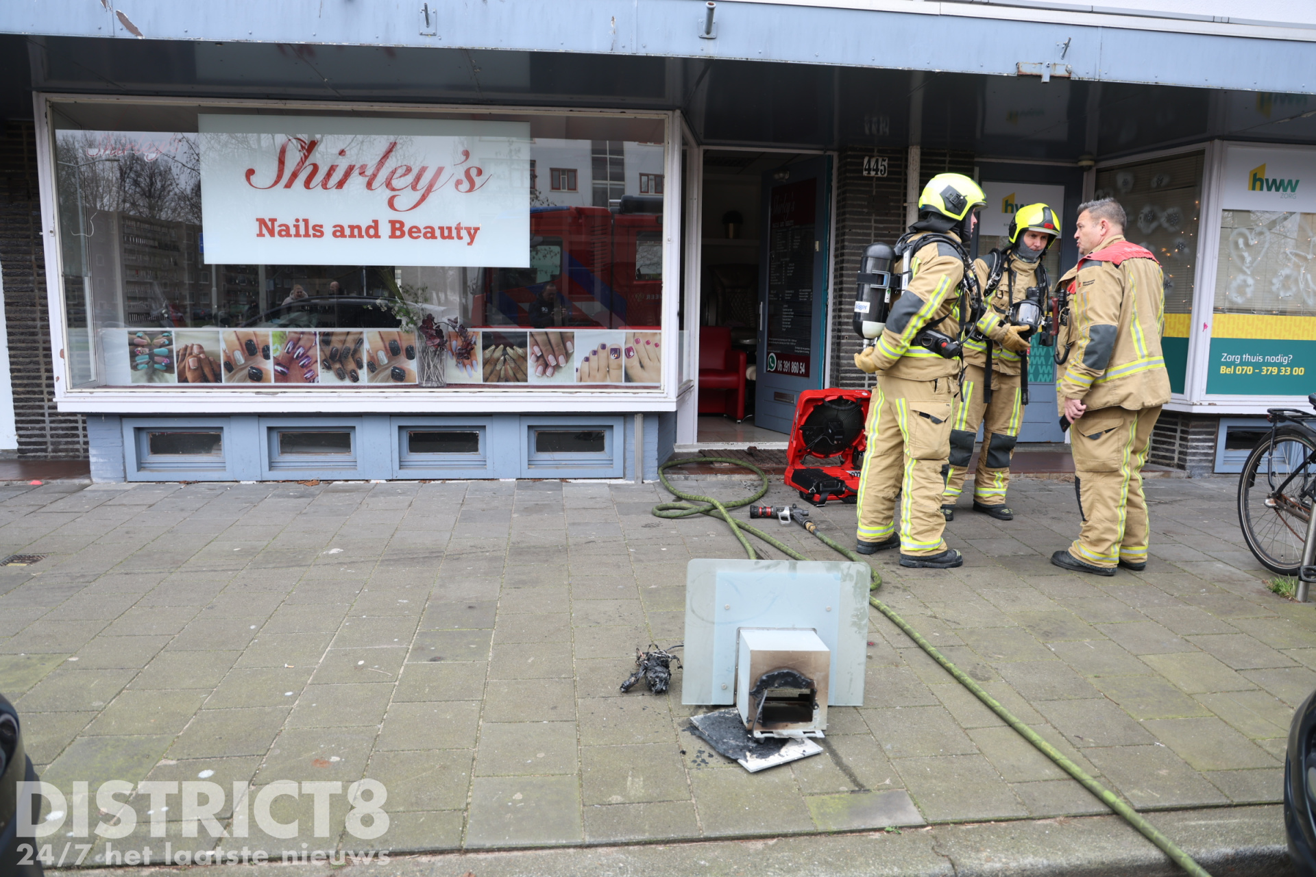 Na het verwijderen van de installatie heeft de brandweer de beautysalon en omliggende woningen gecontroleerd. Niemand raakte gewond.