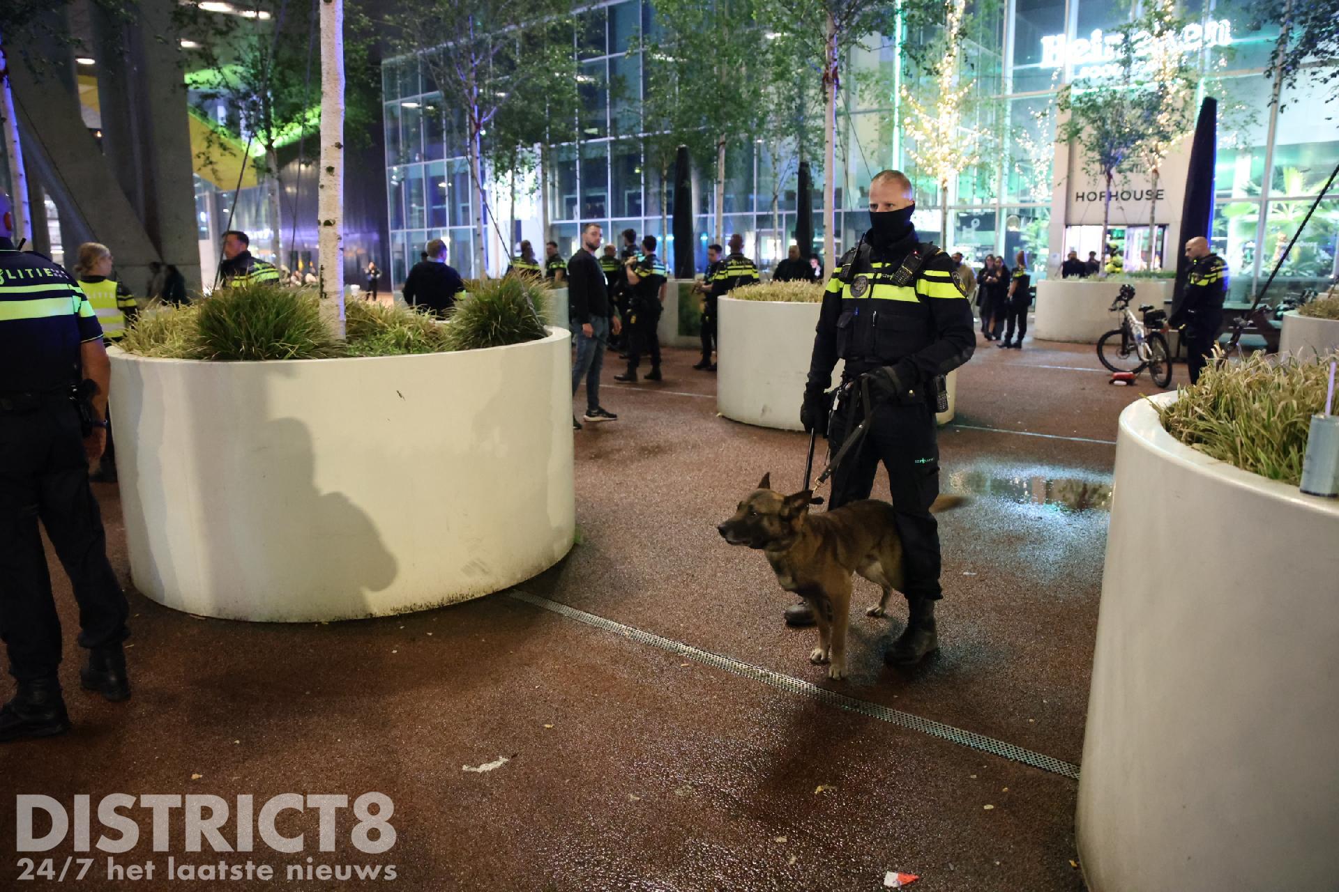 Omdat de toeloop bij het incident groot was hebben agenten een charge uitgevoerd en de menigte richting het Centraal Station gedreven. Hierbij werd door de politie meerdere keren geslagen en gedreigd met de wapenstokken. Ook hebben politiehonden menigtes uit elkaar gedreven. Een tweetal omstanders beledigde de politie en vielen een van de agenten aan. Beide zijn na een korte achtervolging te voet, aangehouden en naar het politiebureau vervoerd.