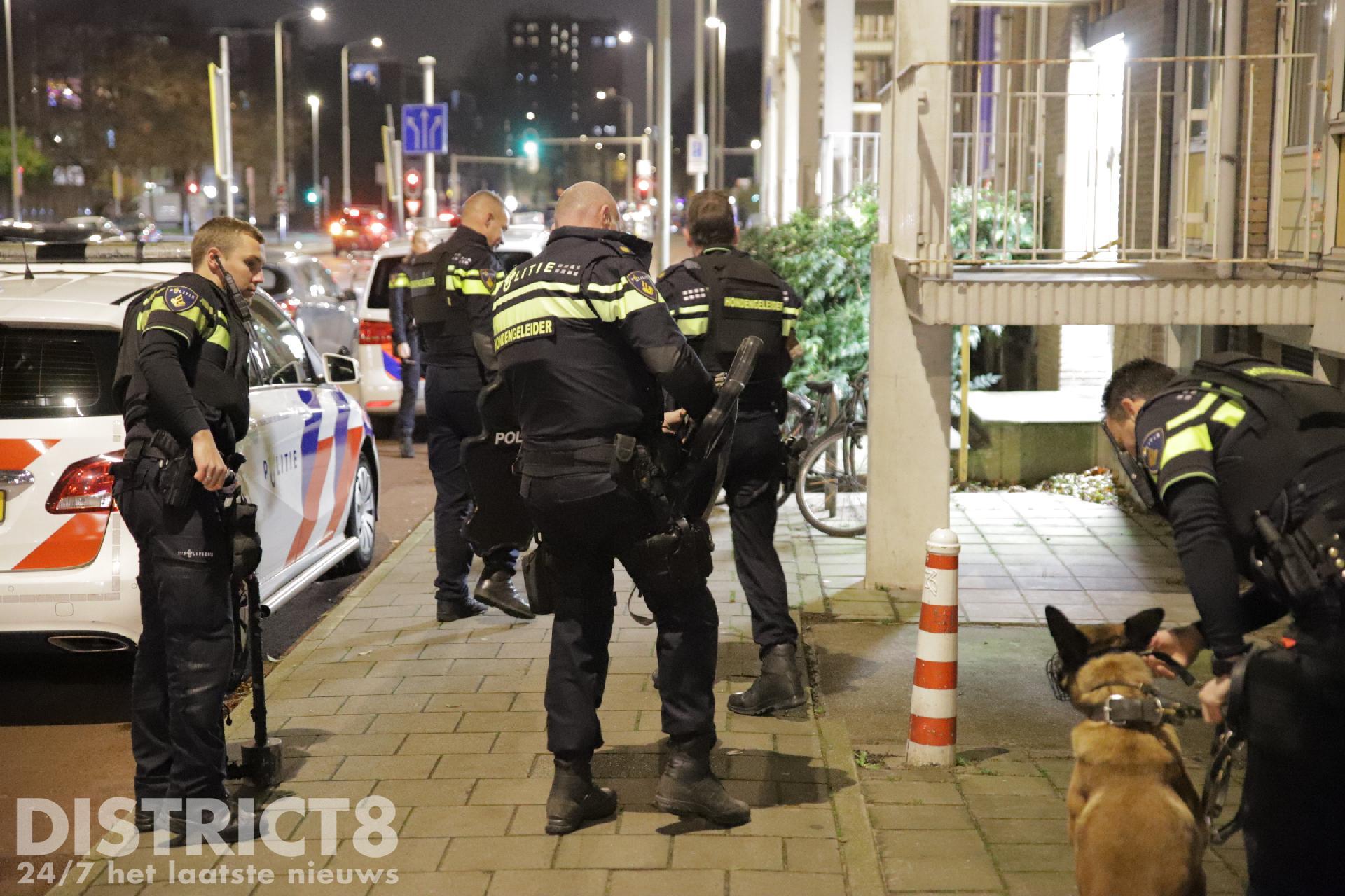 Agenten, waaronder de hondenbrigade, zijn de woning binnen gegaan, maar hebben niemand in de woning aangetroffen.