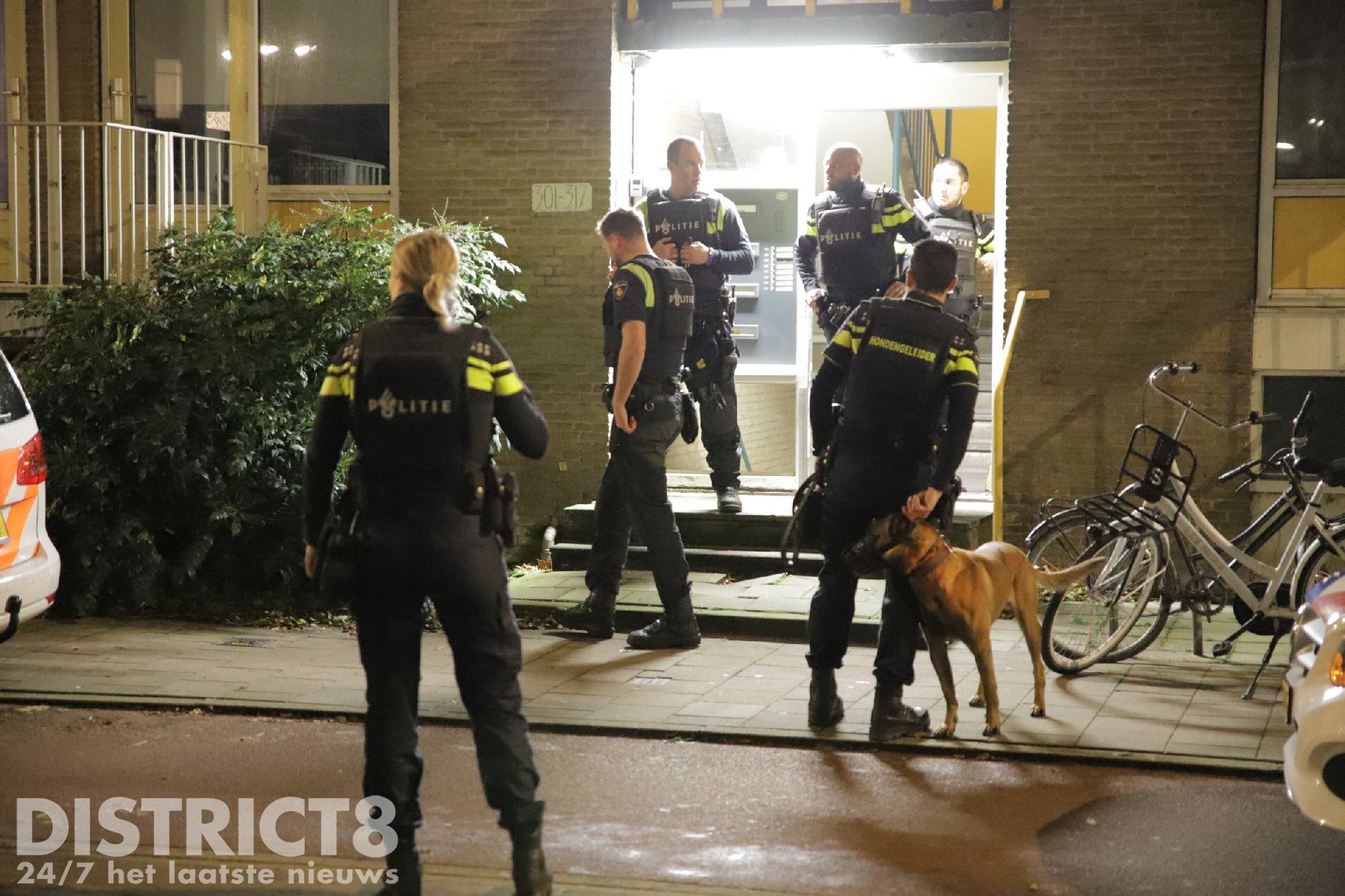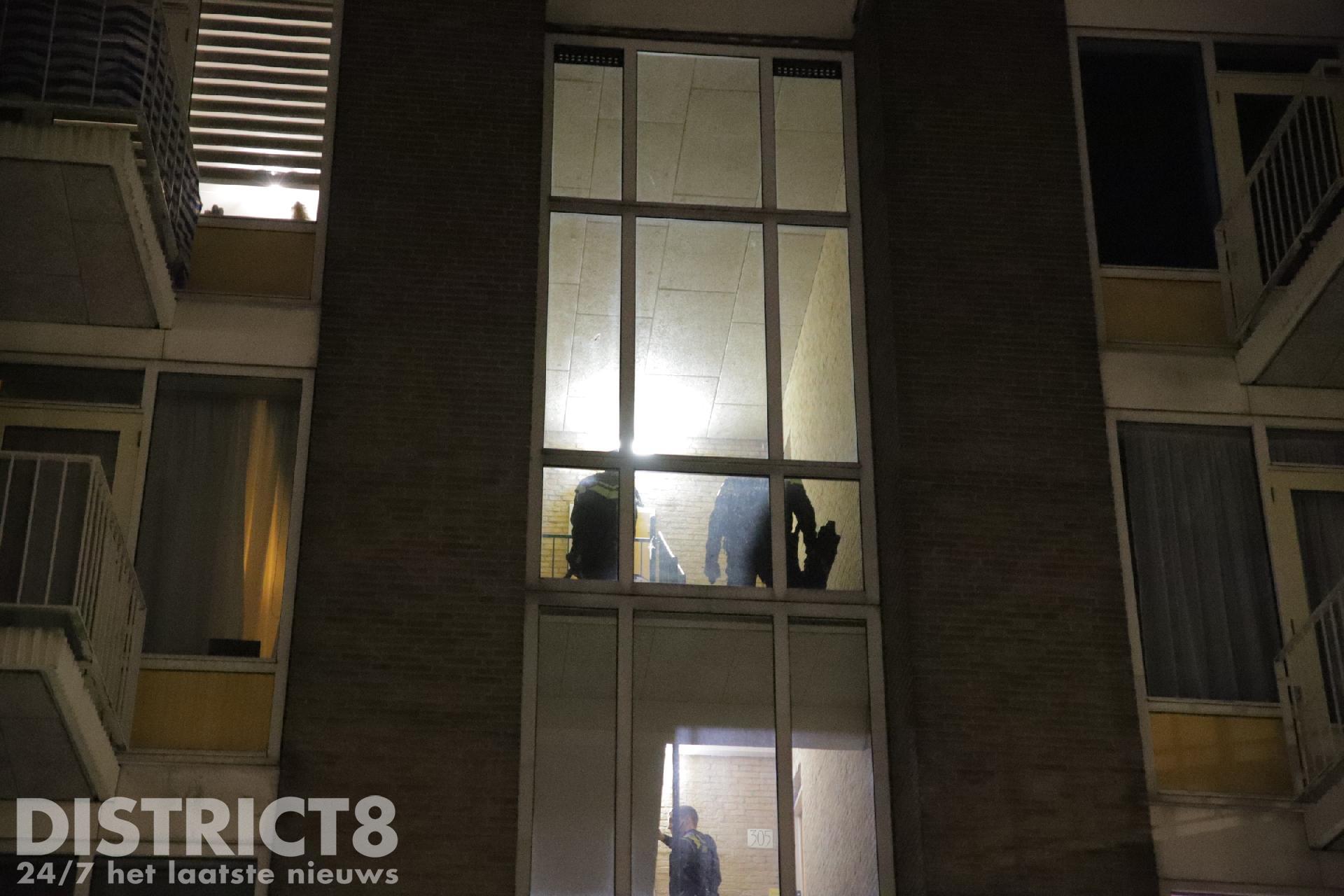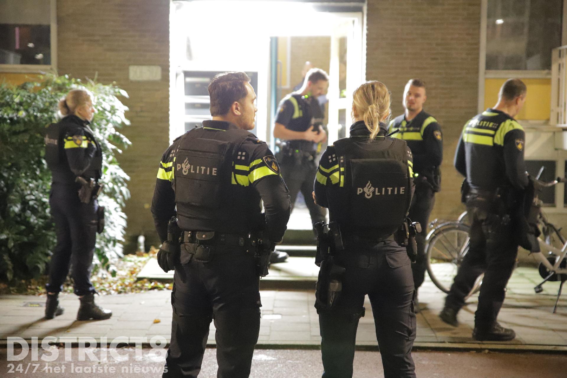 Een vrouw die eerder uit de woning kwam is voor verder onderzoek meegenomen naar het bureau. Zij is niet aangehouden.