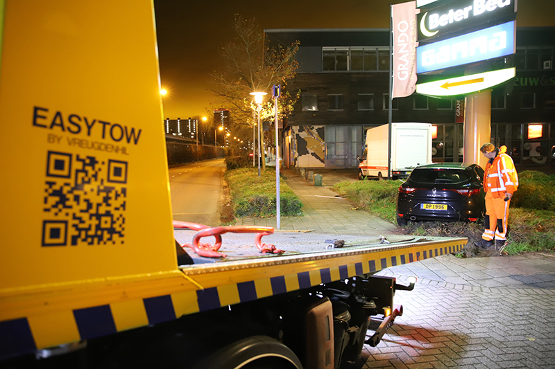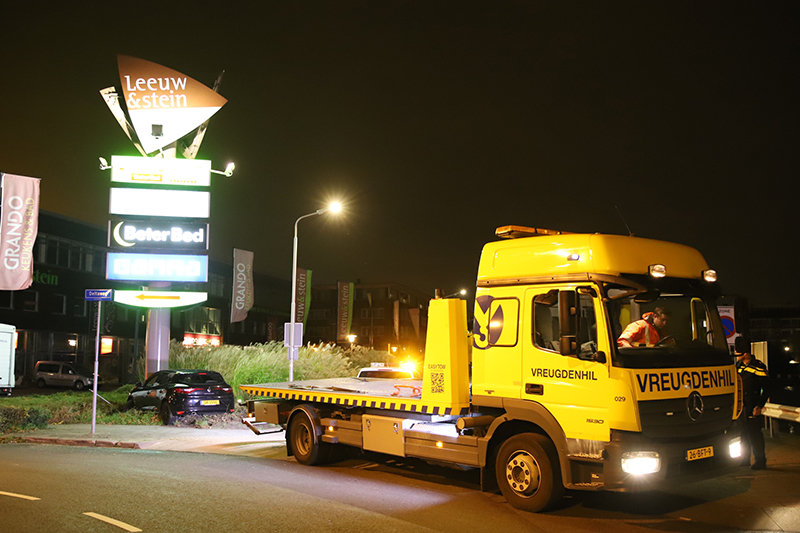 Rond kwart voor één kreeg de politie de melding van een éénzijdig ongeval. Toen zij ter plaatse kwamen troffen zij een auto aan. Deze stond op een bijzondere plek.