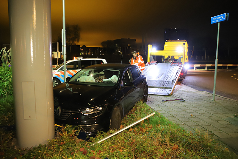Alcoholmobilist rijdt auto kapot tegen paal Deltaweg Delft